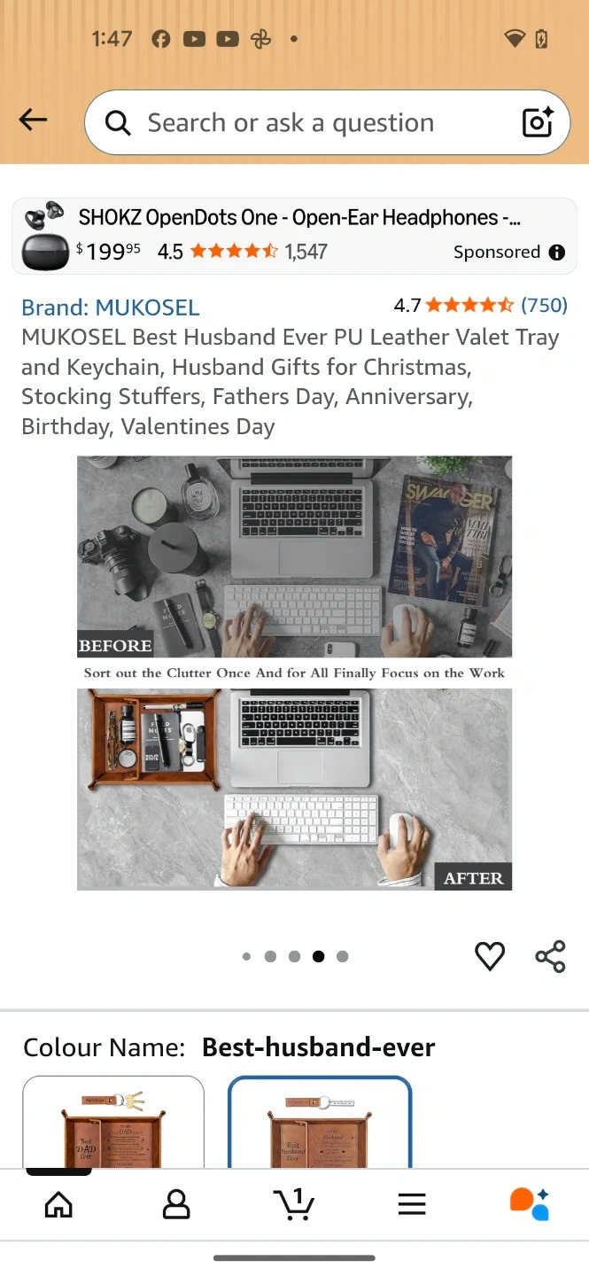 MUKOSEL Best Husband Ever PU Leather Valet Tray and Keychain