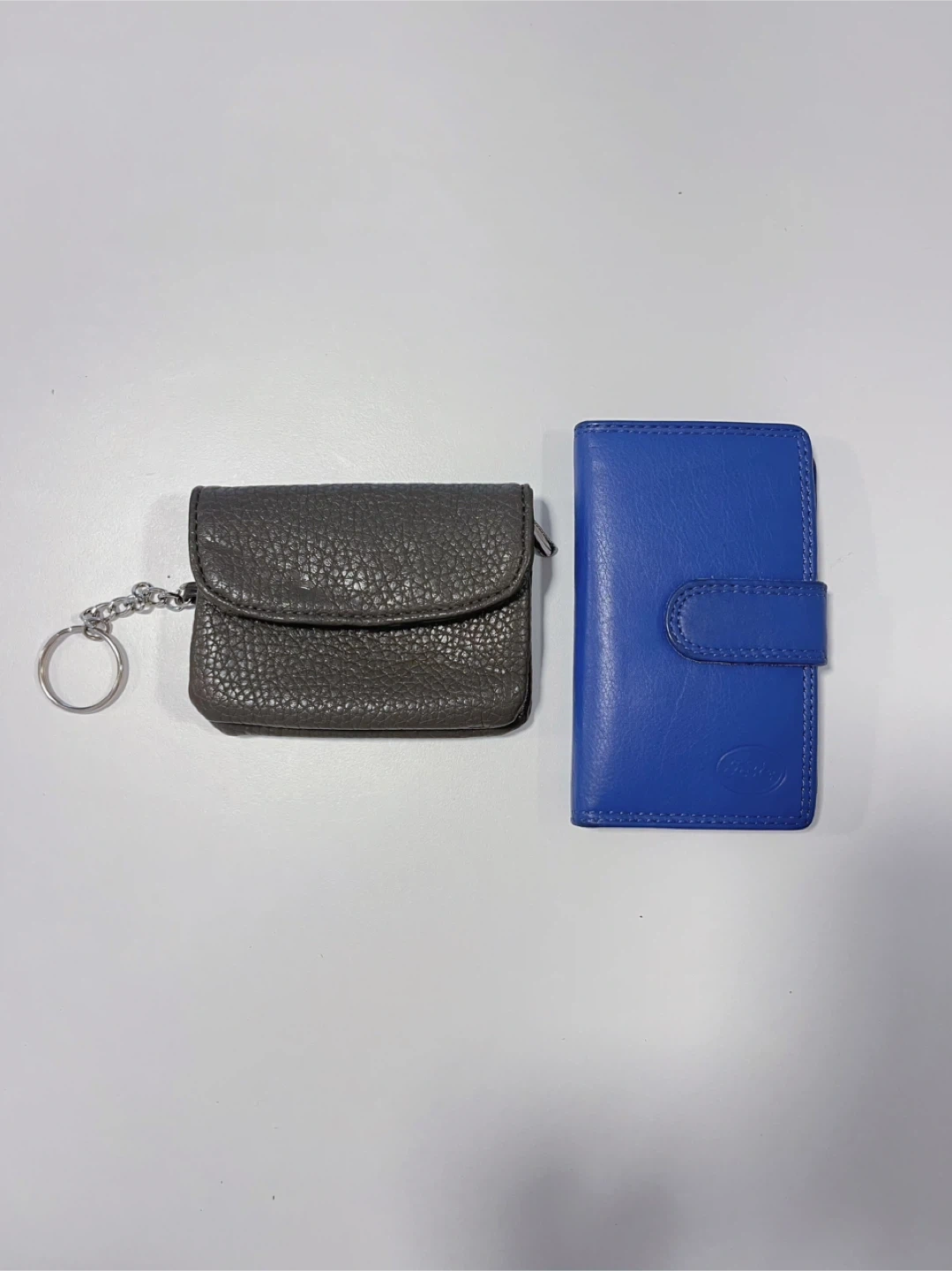 -one grey coin purse with a keychain.