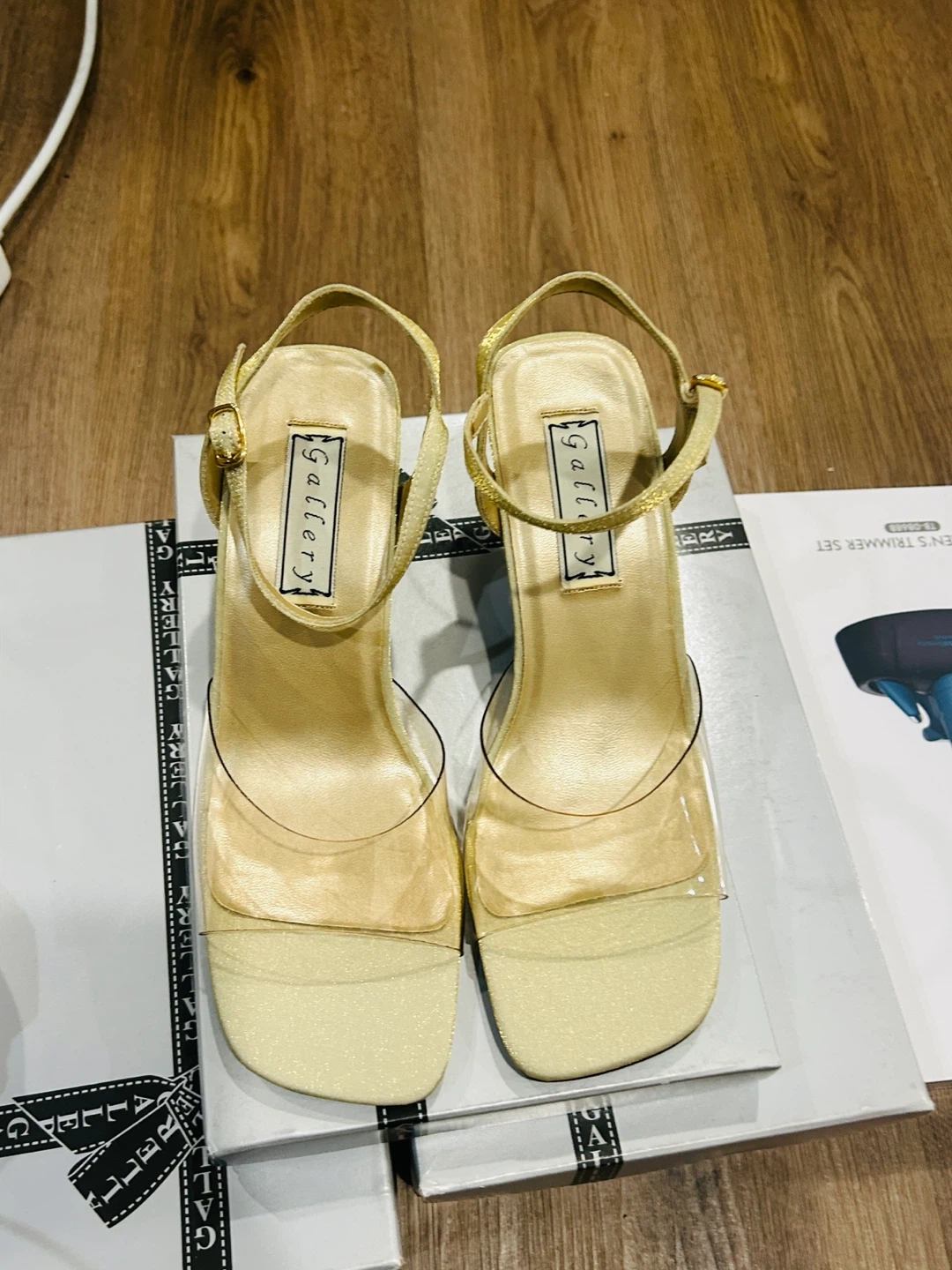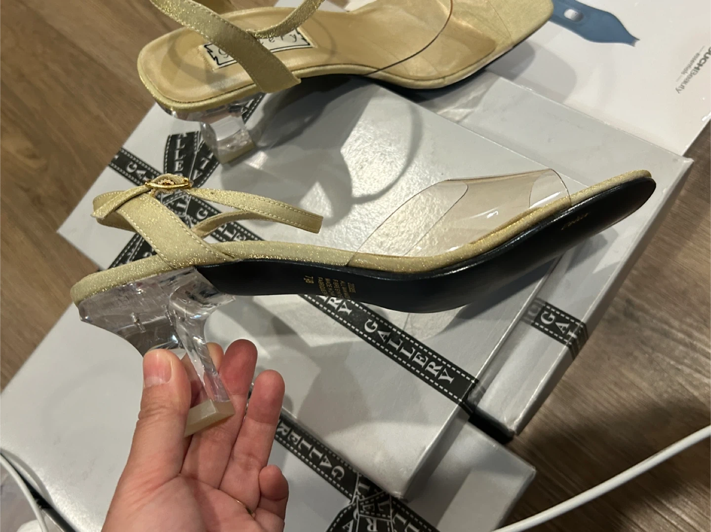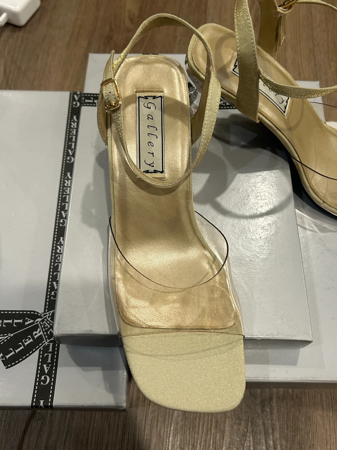 Gallery Women's Gold Clear Heel Sandals Size 7.5
