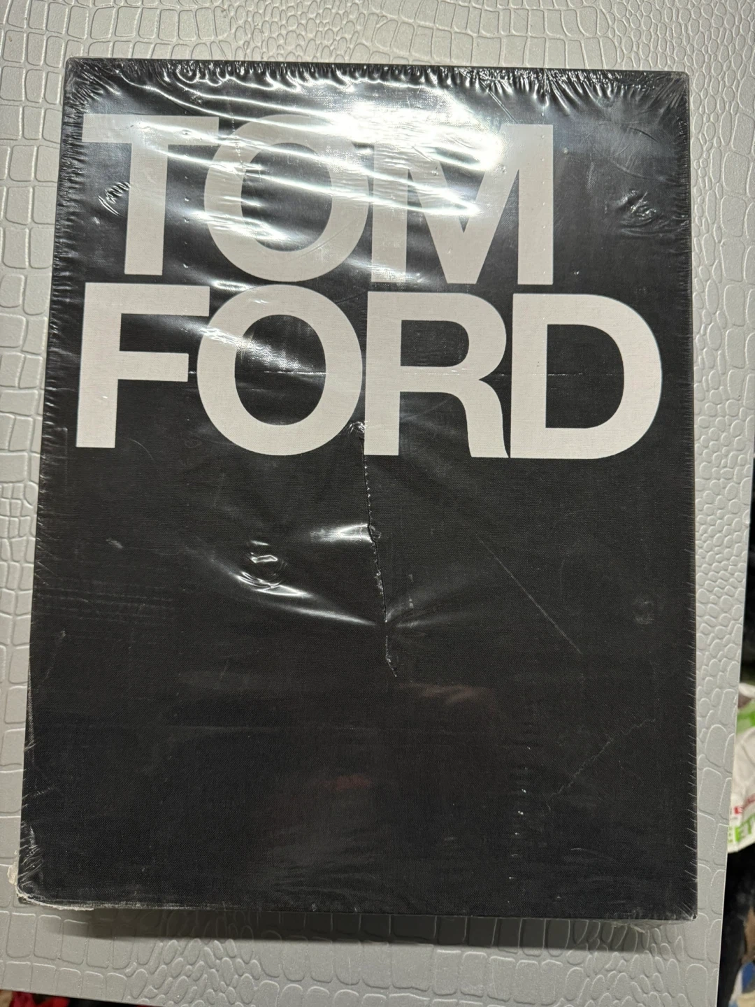 This is a Tom Ford book, sealed in plastic. It features the brand's iconic logo prominently on the cover. ISBN information is visible on the back.