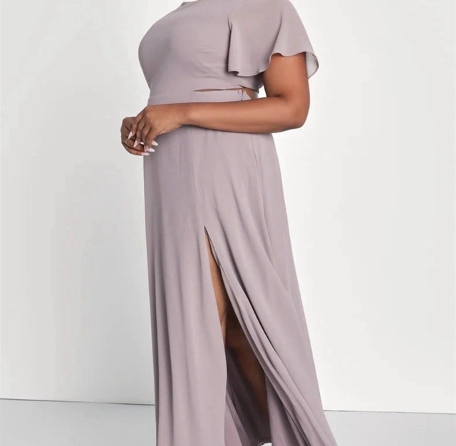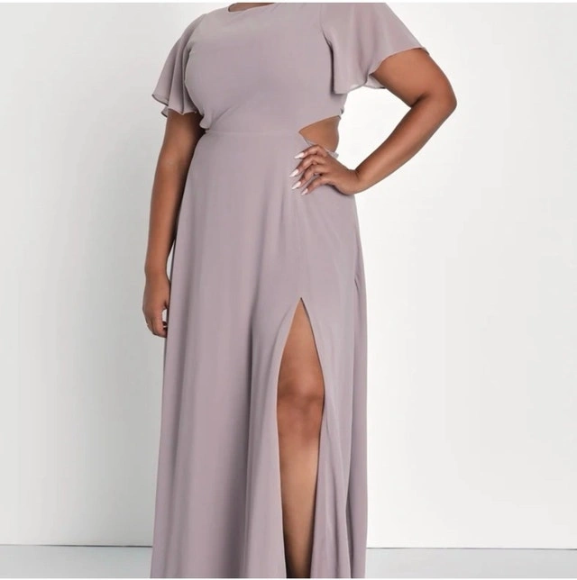 Elegant Garden Bliss Dusty Lavender Cutout Maxi Dress. Perfect for any occasion, it features a flattering silhouette and a chic side slit. Size: 2x Brand: Lulu’s Never worn