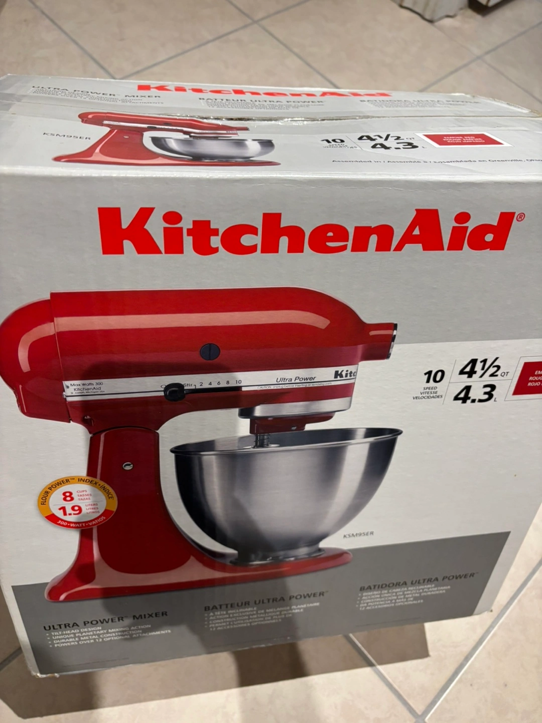 KitchenAid Ultra Power stand mixer. Red colour. 4 1/2 quart capacity. 10 speeds. Includes original bowl.