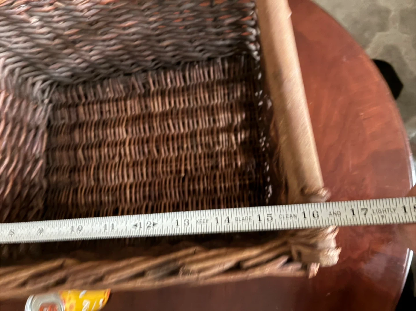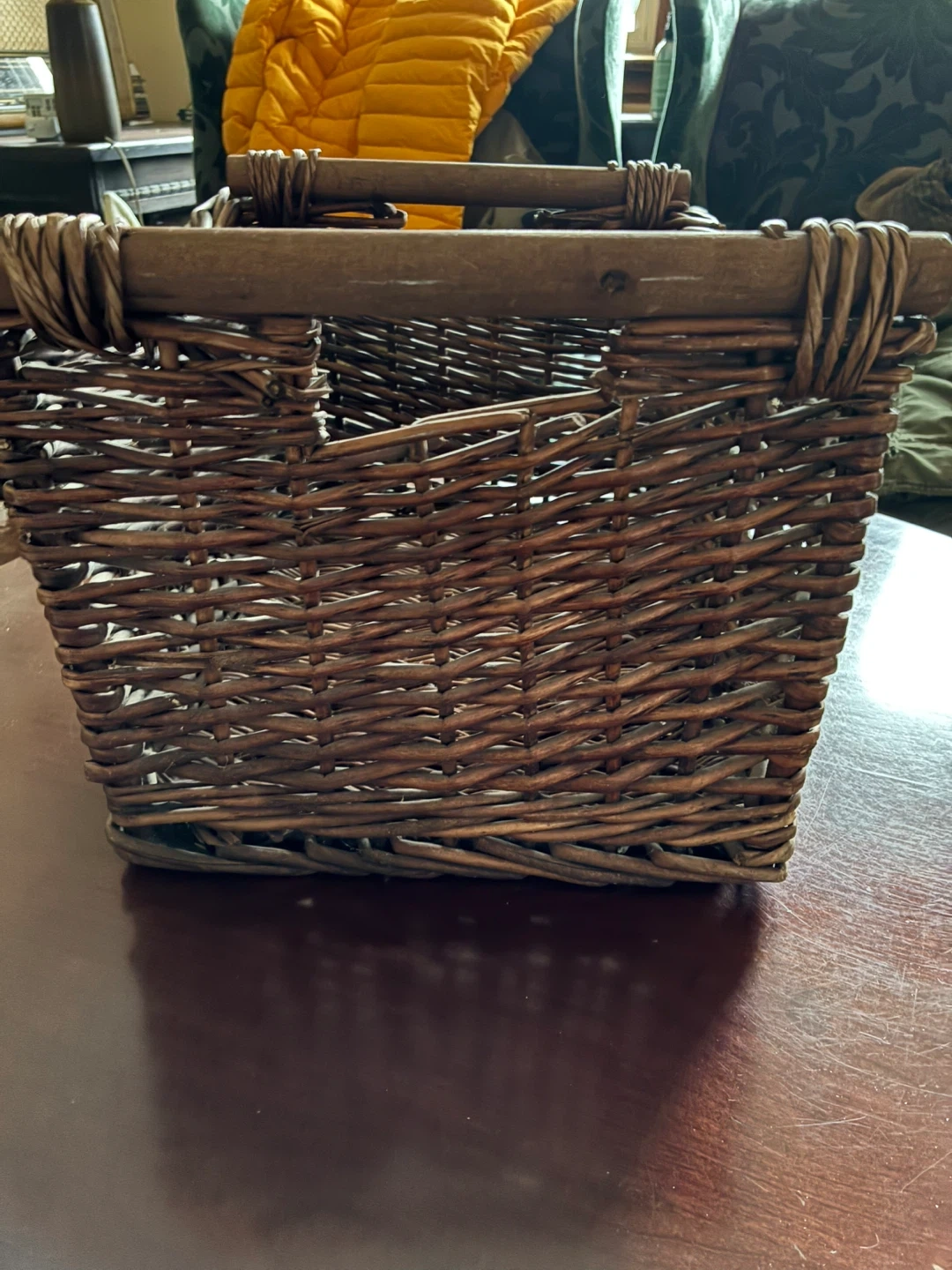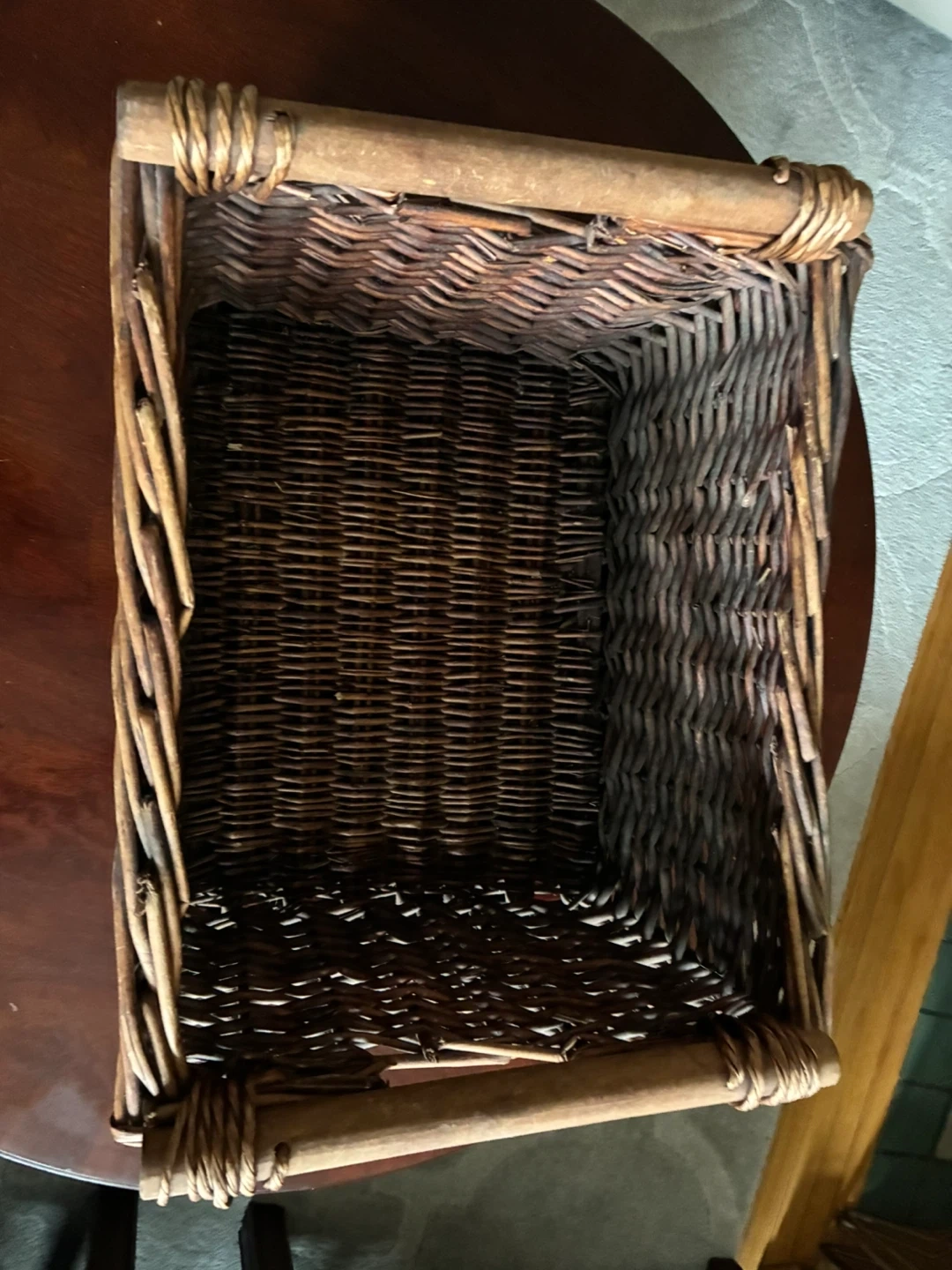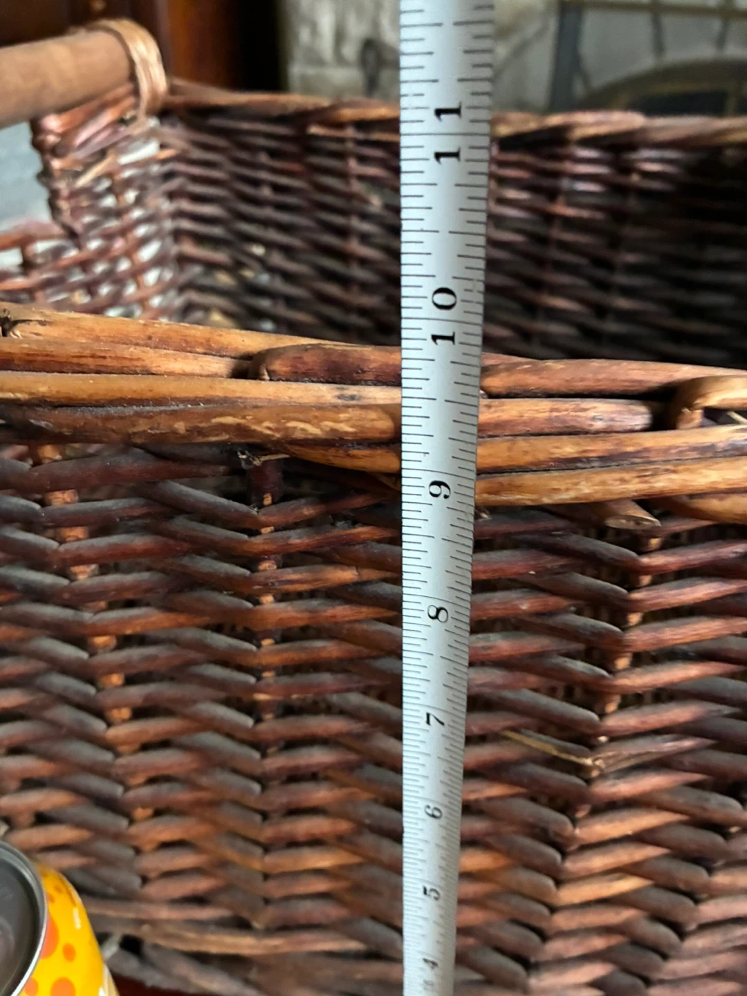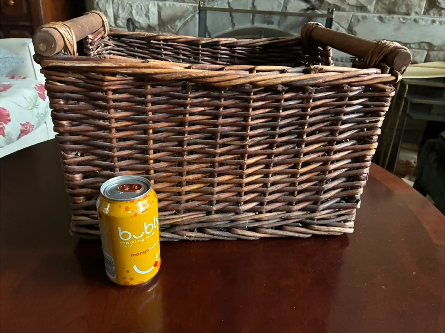 $12 Wicker Woven Storage Basket handles 10 x 12 x 16 inch firewood planter garden Donlands O'Connor