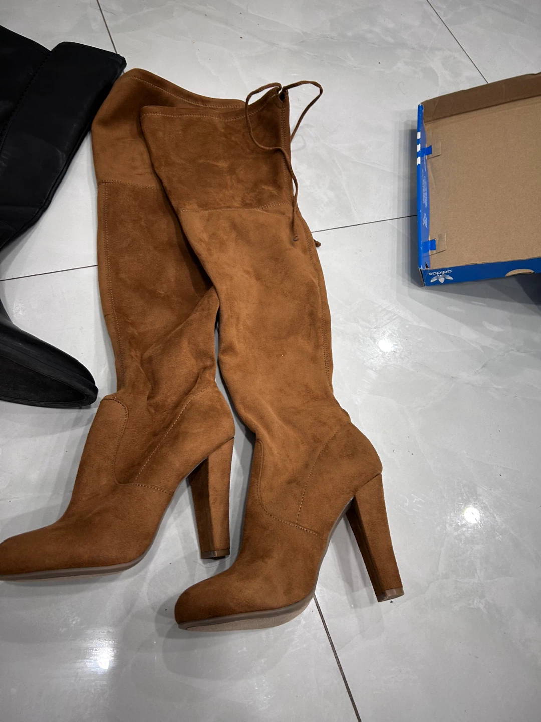 Selling two pairs of over-the-knee boots! One pair is black and the other is a brown suede. Black leather franco sarto size 6.5 and brown one (zijisoho) size 7
