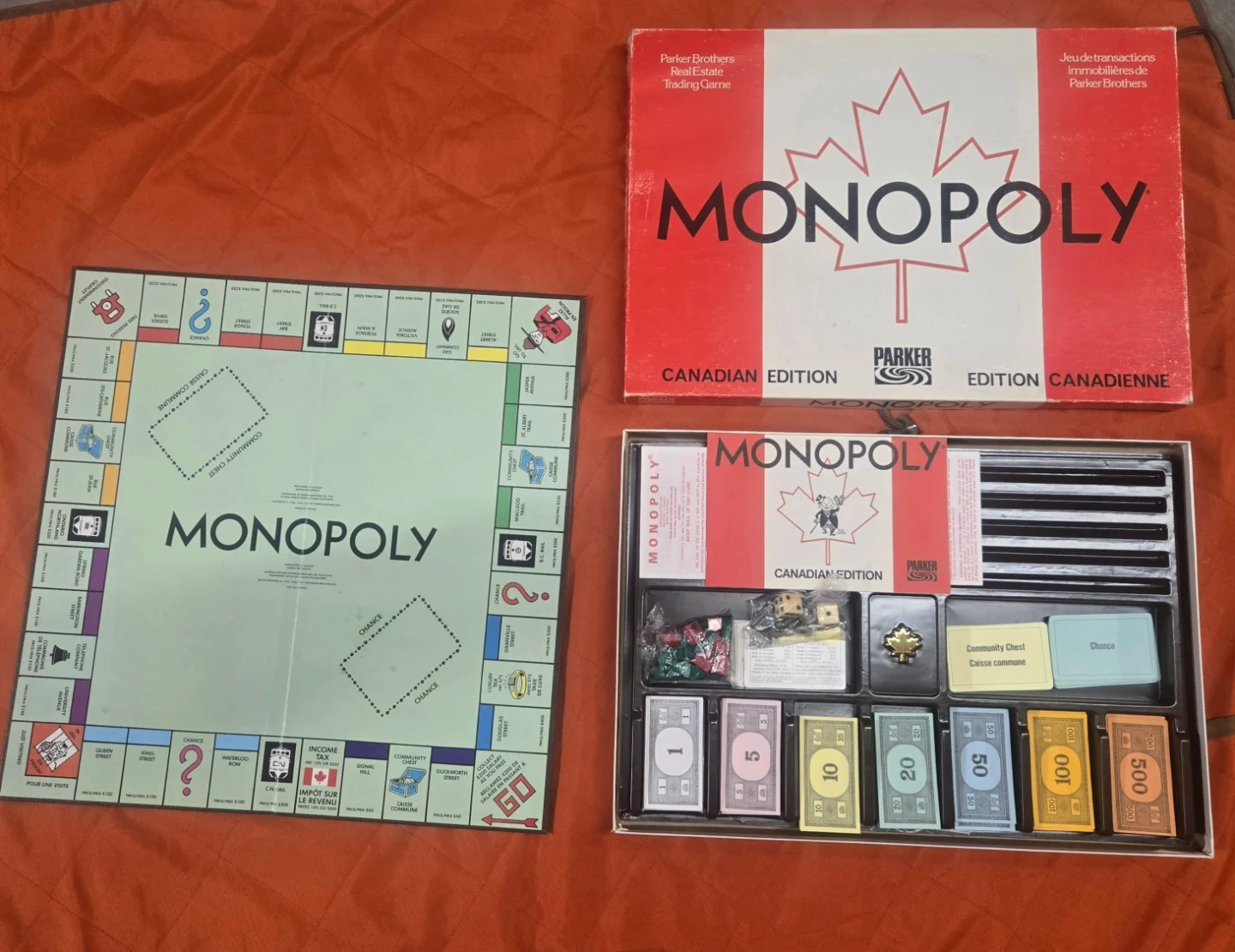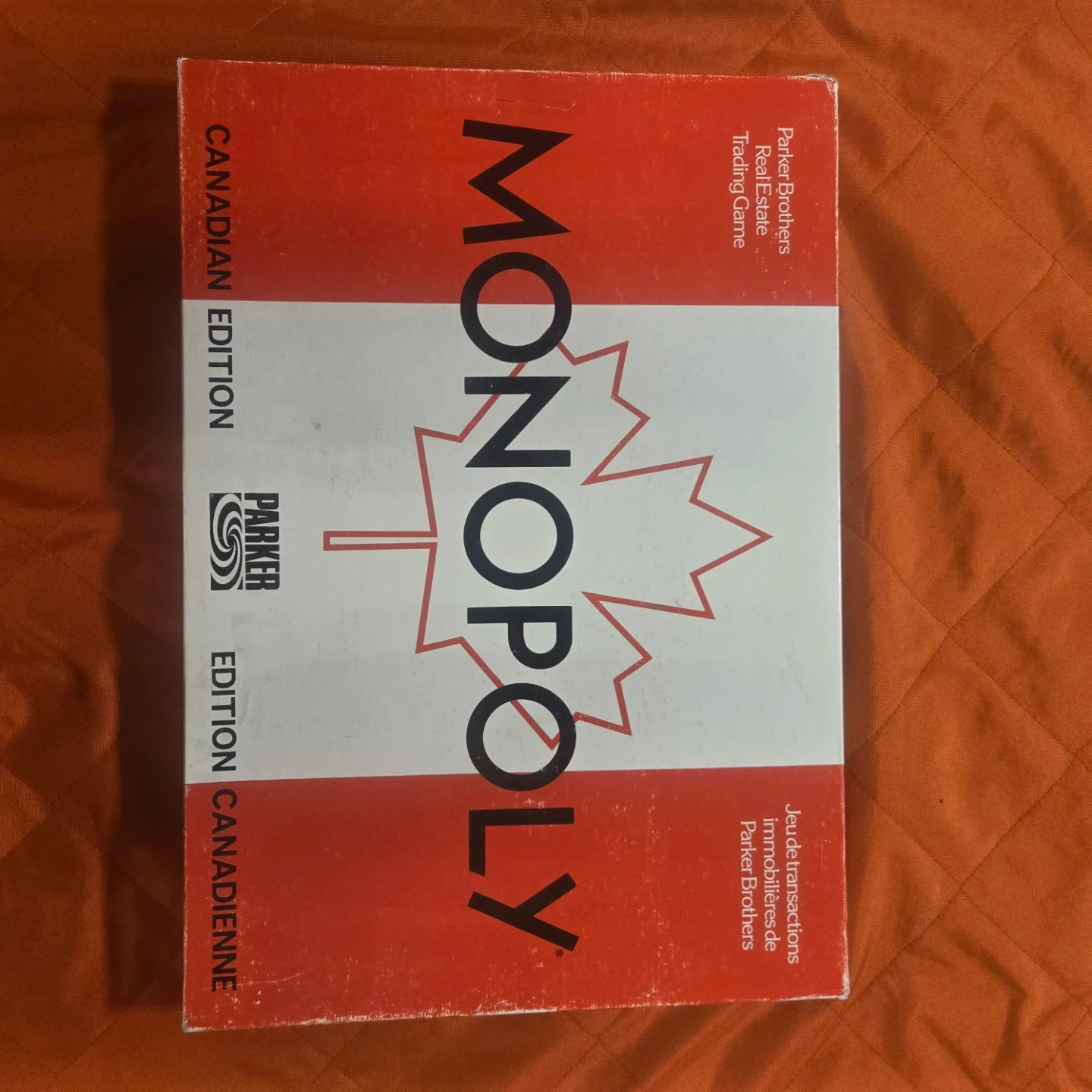 Parker Brothers Monopoly Canadian Edition board game. Comes with all tokens, cards, and game pieces. It's a fun trading game for families and friends. Great for game nights!