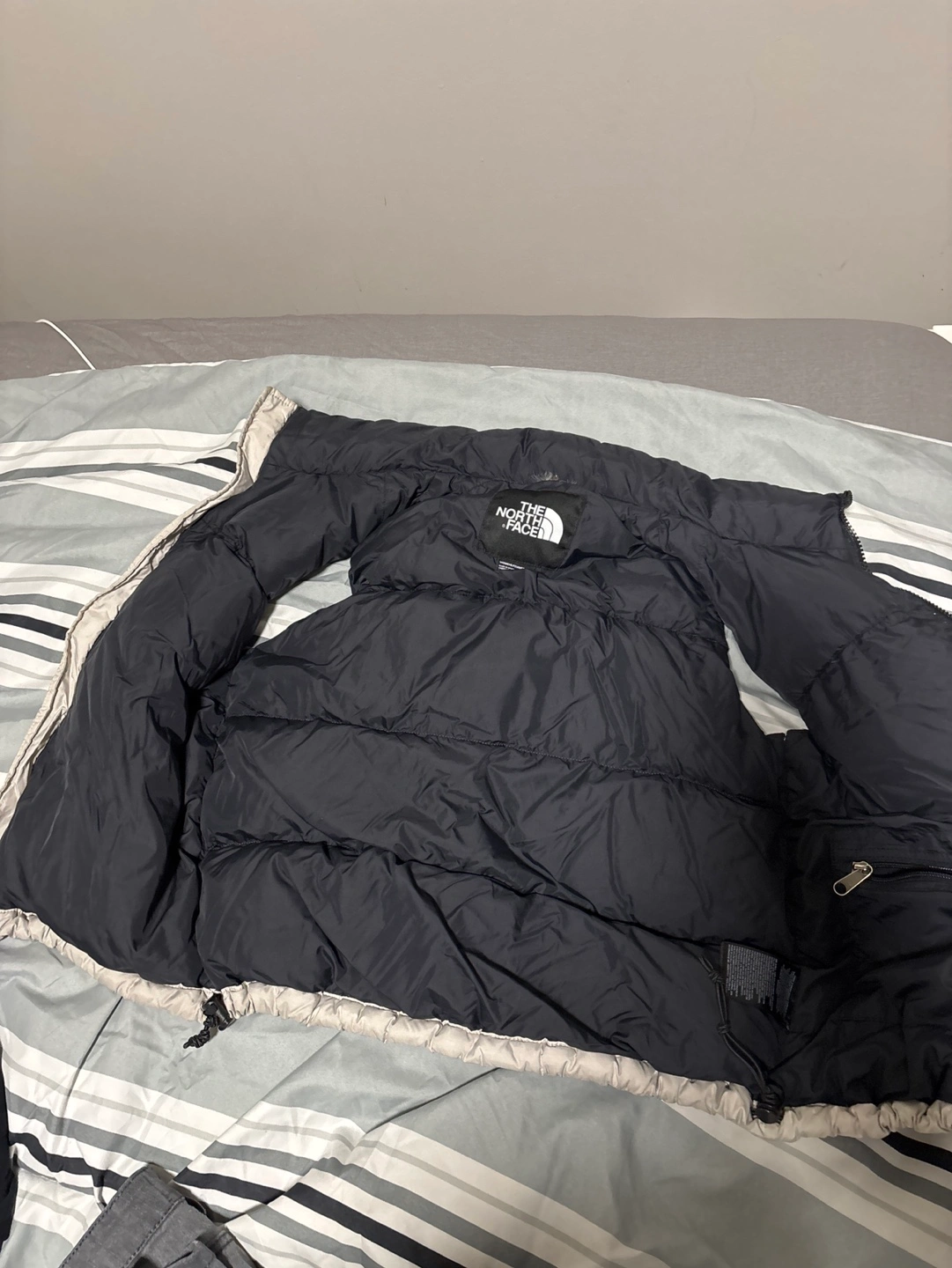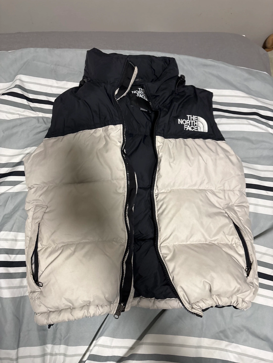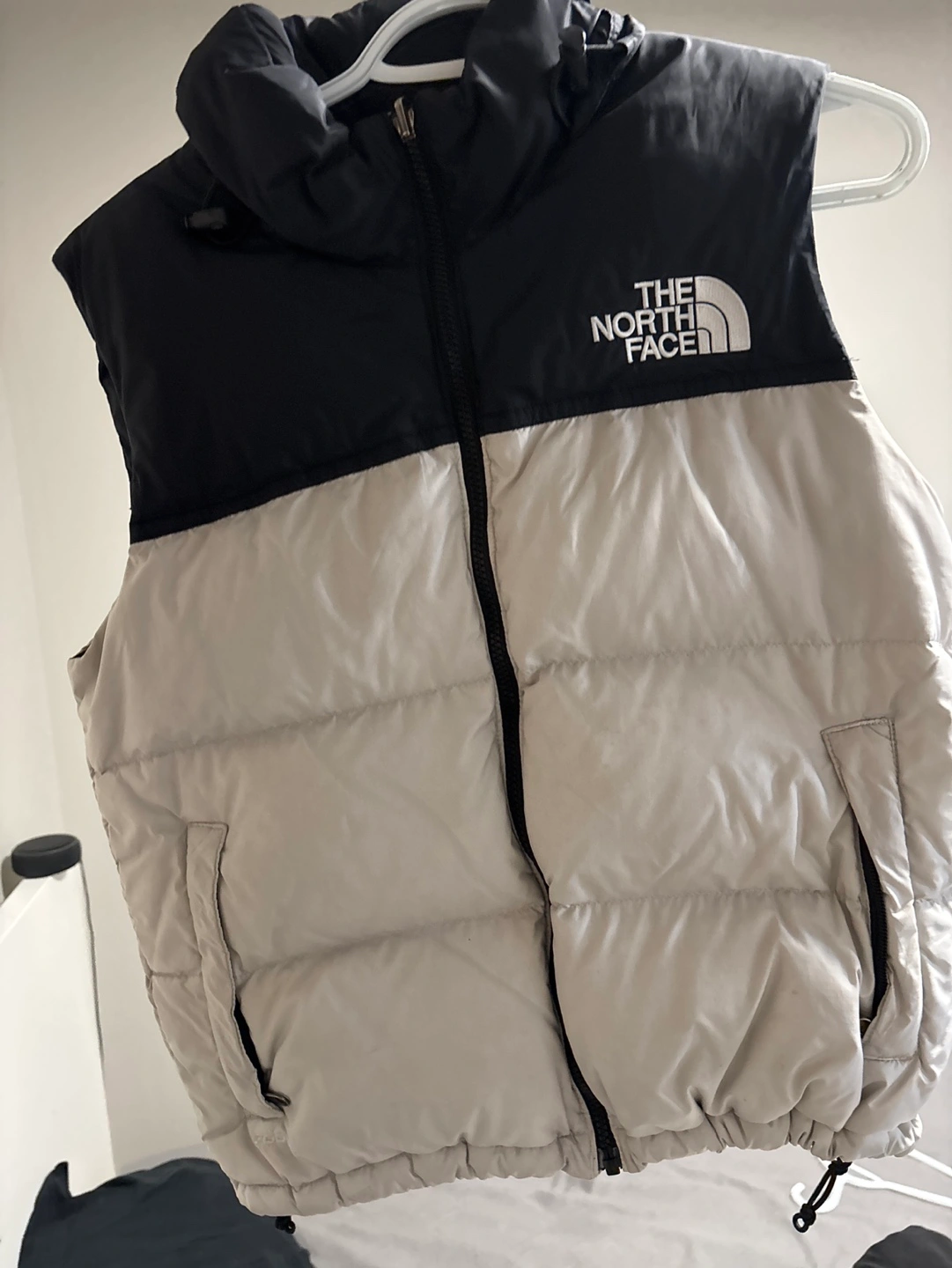 Men's puffer vest. Black and light gray colorblock design. Zipper closure. Drawstring hem. Good condition. Best offer