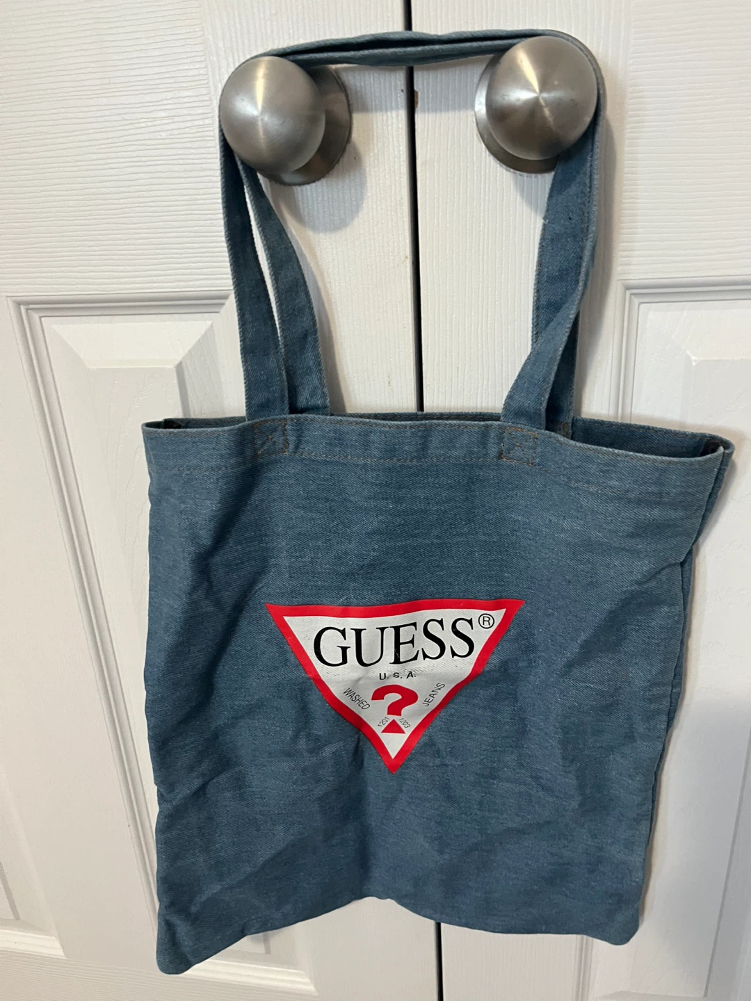 A classic denim tote bag from Guess. It's made of durable denim material and features the iconic Guess logo. Perfect for everyday use!