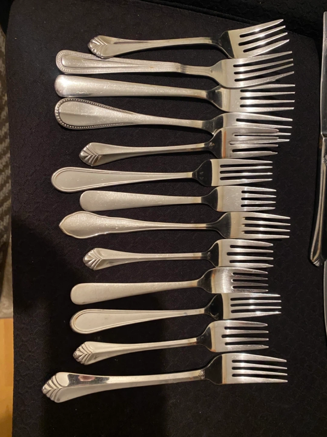 13 forks, 9 knives, and 10 spoons. The pieces feature a variety of decorative handle designs, showcasing different patterns and embellishments. Various sizes and patterns as shown in pictures.