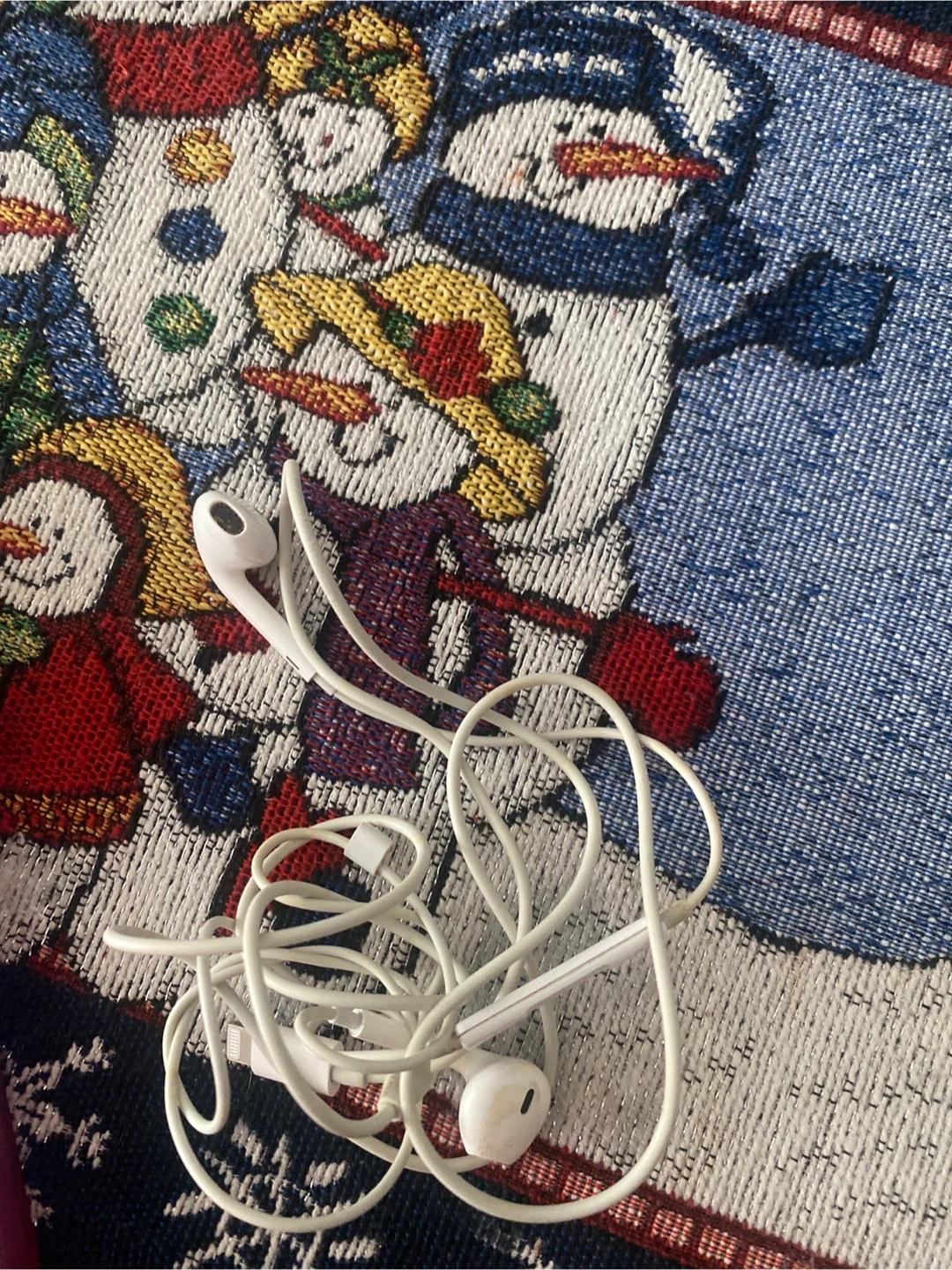 White wired earbuds with a Lightning connector. These earbuds offer a standard audio experience.