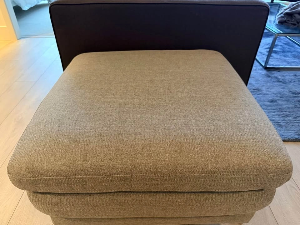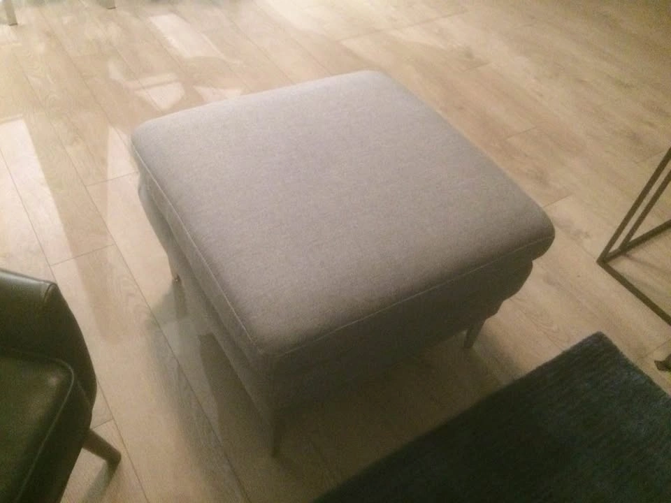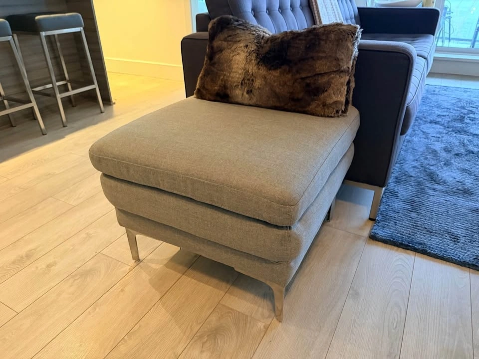 Modern square ottoman from Inspiration Furniture (Vancouver) in like-new condition. Barely used and extremely clean. Neutral grey fabric fits easily with any living room or condo décor.