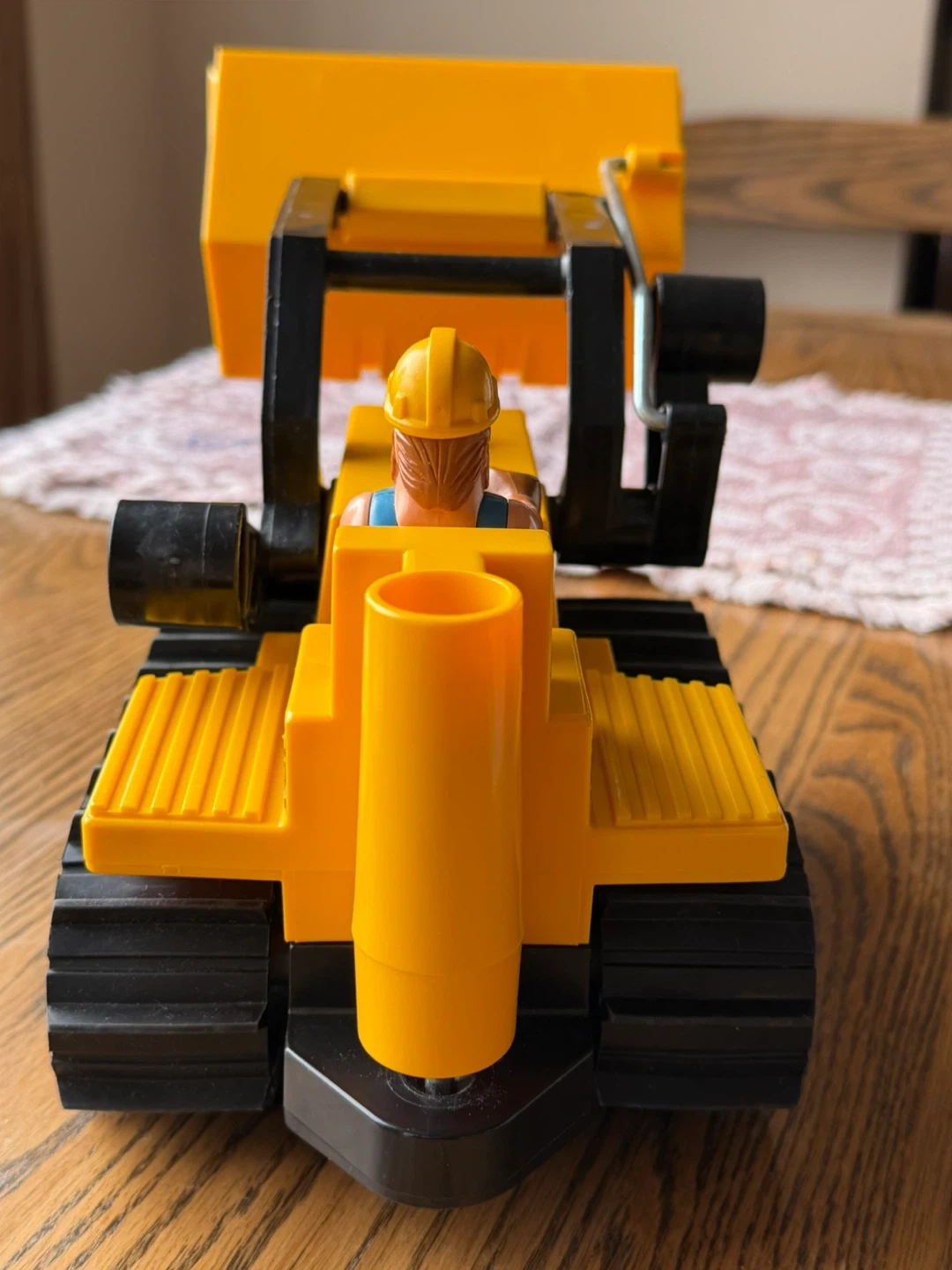 This is a vintage 1980’s Fisher-Price Big Loader construction toy. It features a working bucket and a figure driver. Made of durable plastic for lots of play time!