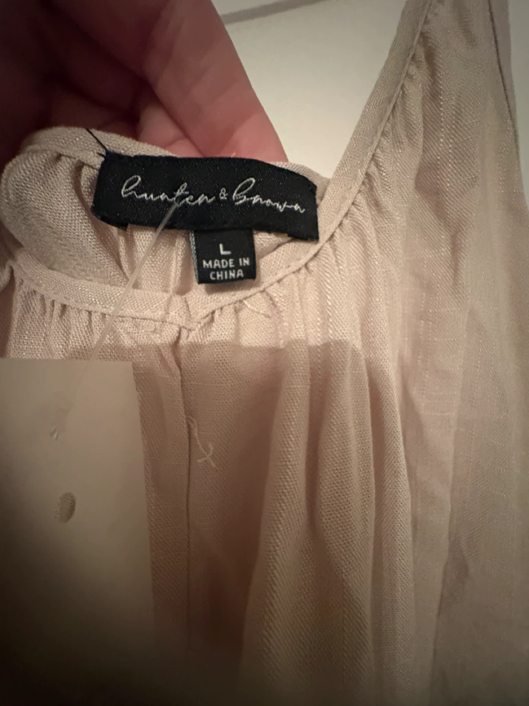 Selling a brand new tags attached,comfy Haven & Brown jumpsuit in a lovely beige colour! It's a size large and features a relaxed fit. Perfect for warm weather days or lounging around the house. It has pockets!