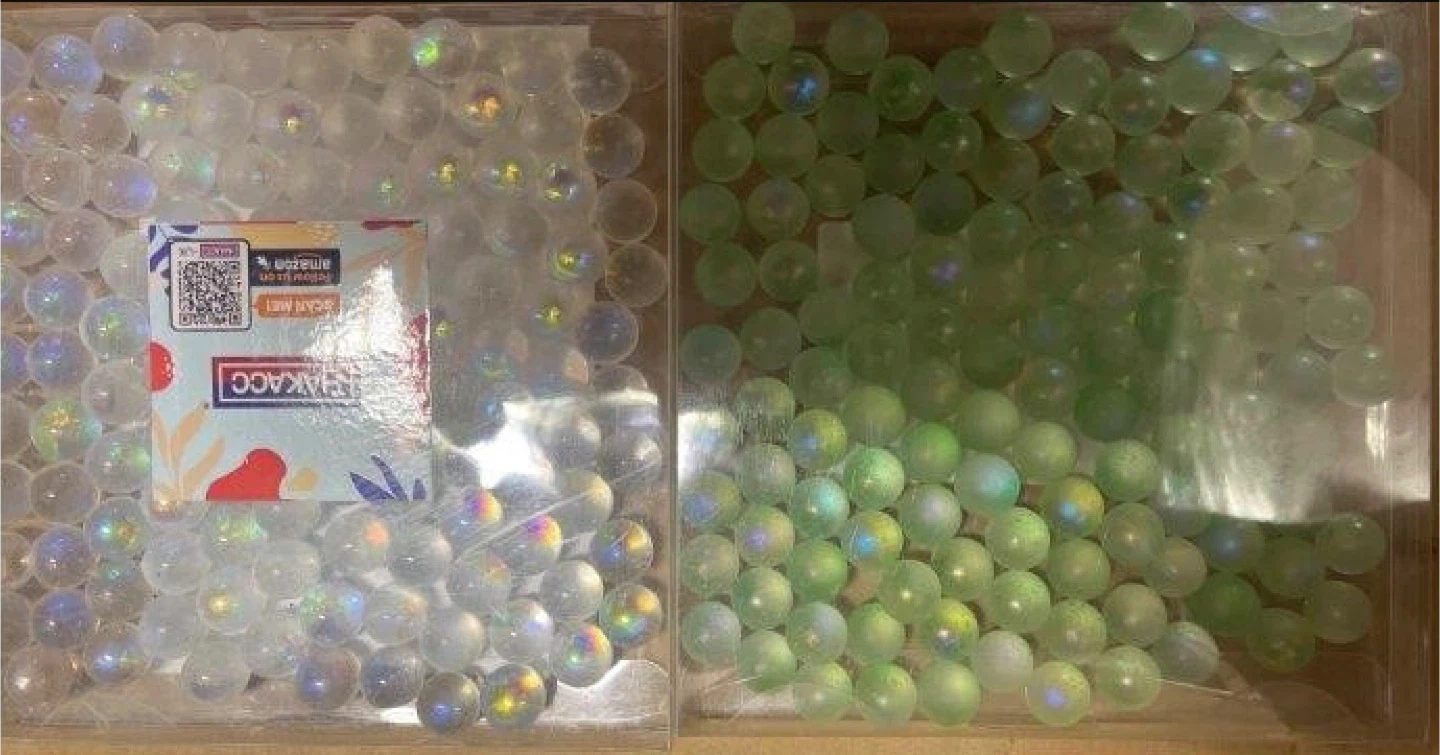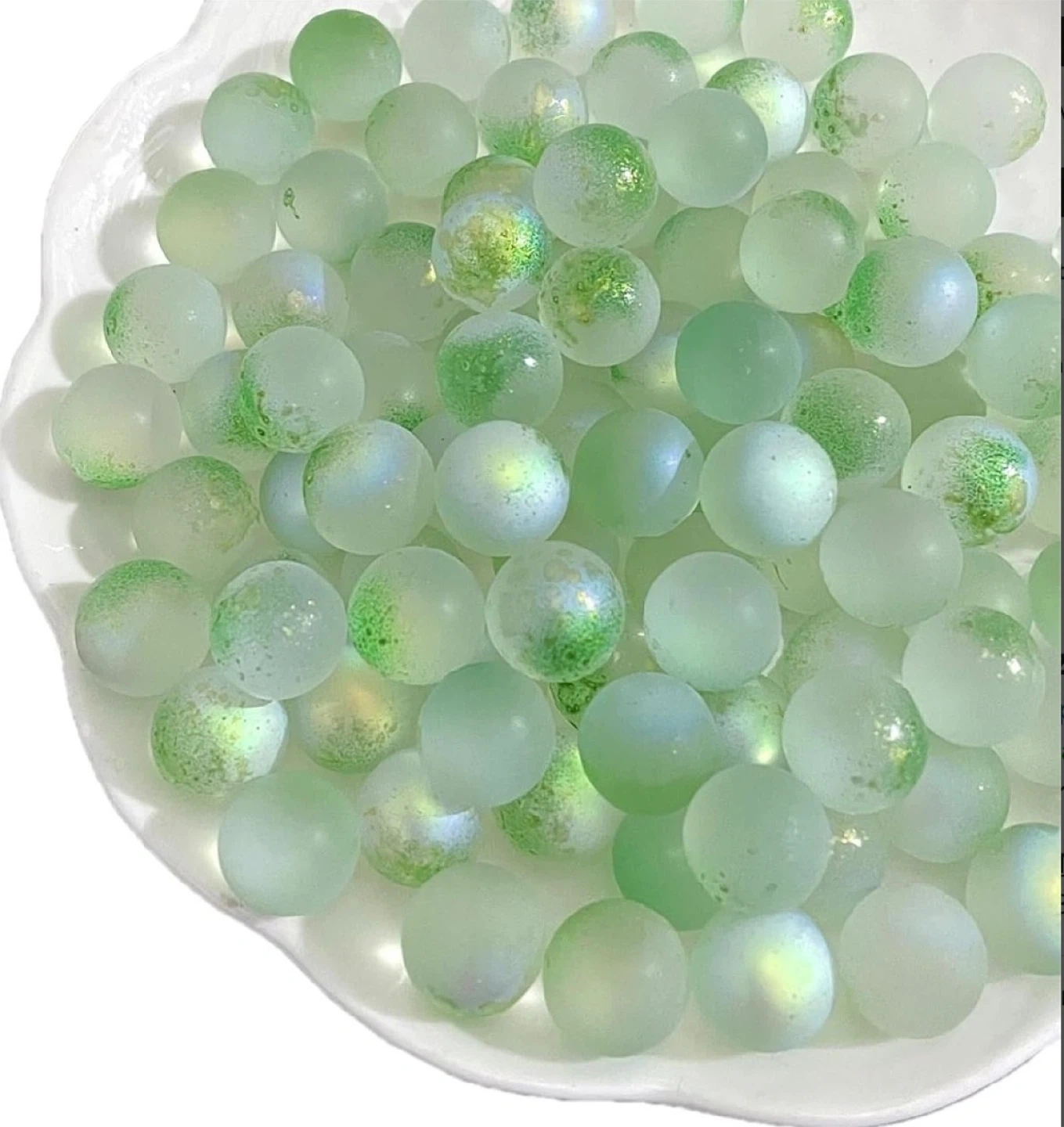 These are factory-sealed Hakacc brand acrylic round balls, perfect for various decorative or craft purposes; these balls have a slight iridescent finish. This set is new and sealed.