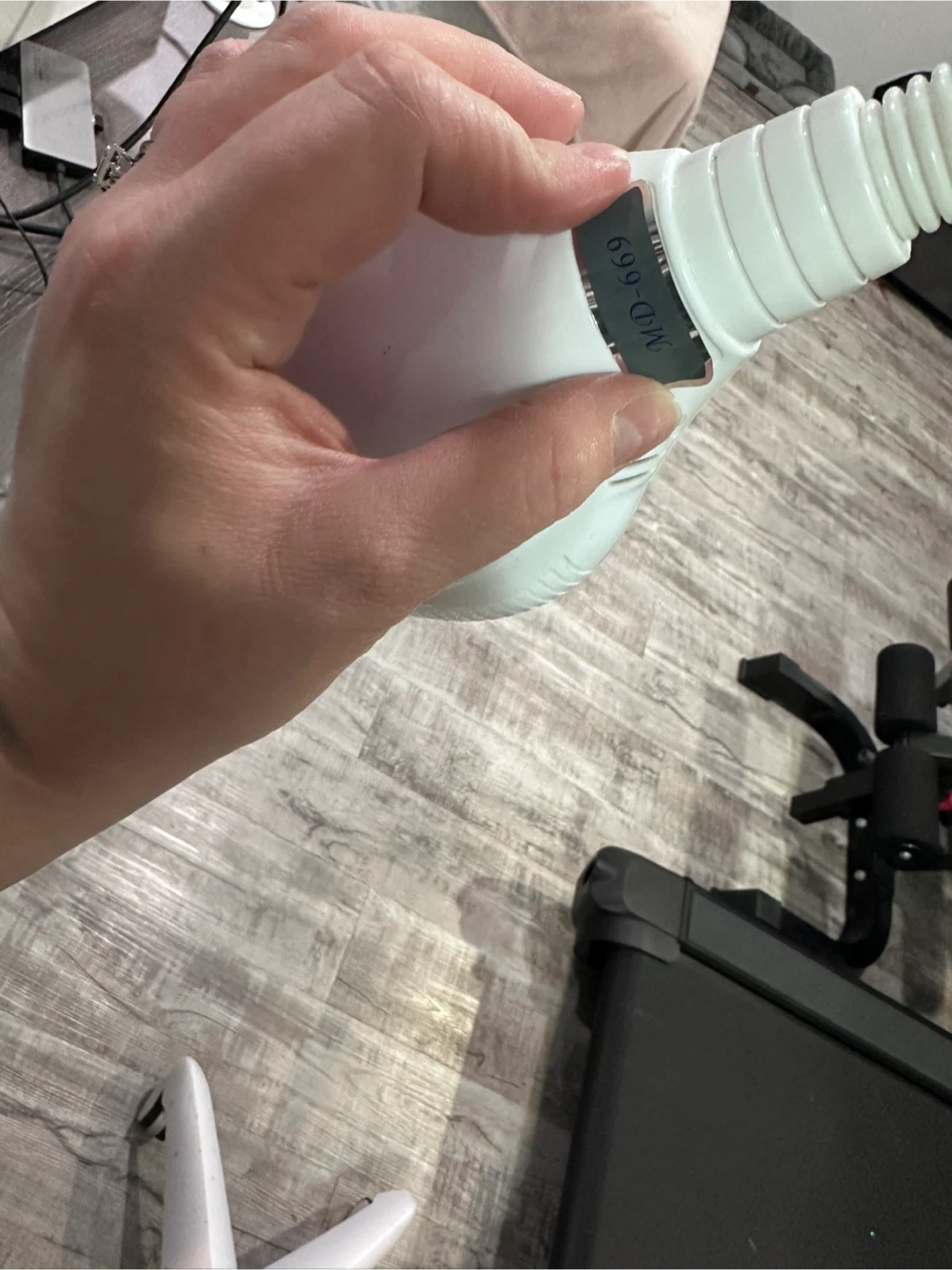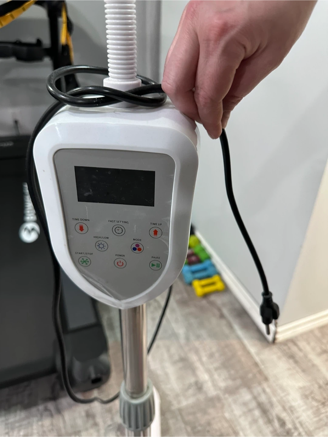 This professional LED lamp is designed for teeth whitening treatments. It features adjustable height and a flexible gooseneck for optimal positioning. The control panel allows for easy adjustment of time and intensity settings. It's great for dental offices or home use for efficient whitening sessions.