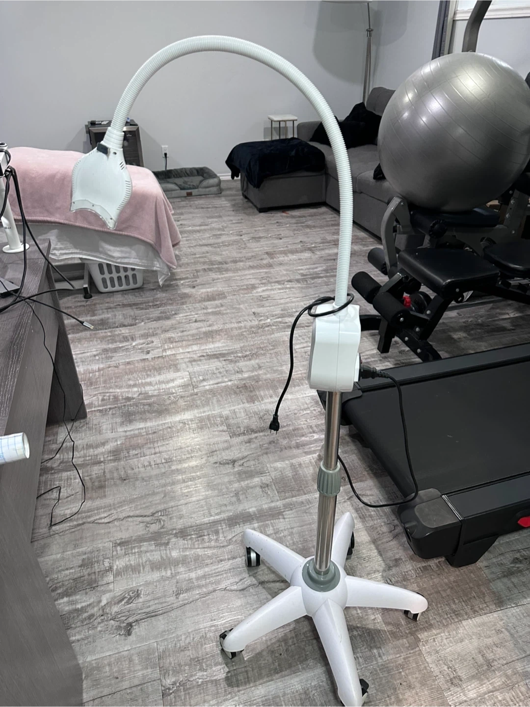 This professional LED lamp is designed for teeth whitening treatments. It features adjustable height and a flexible gooseneck for optimal positioning. The control panel allows for easy adjustment of time and intensity settings. It's great for dental offices or home use for efficient whitening sessions.