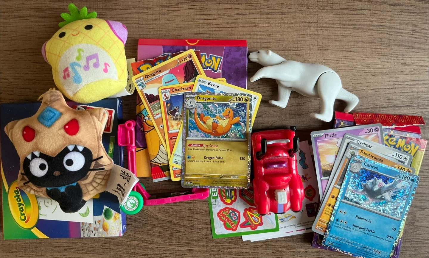 Buy & SellHappy Meal Toys and Pokemon CardsHappy Meal Toys and Pokemon Cards$2Assorted Happy Meal toys. All for $2 together.WHERE TO MEETThe Amazing BrentwoodView MapSELLERAnnieBurnaby Lake658 reviews1 chats·0 favorites·17 viewsSEND CHAT TO SELLERHi Annie! I’m interested in your listing.Hi Annie! I’m interested in your listing.Get the Karrot app to chatSign In to chat