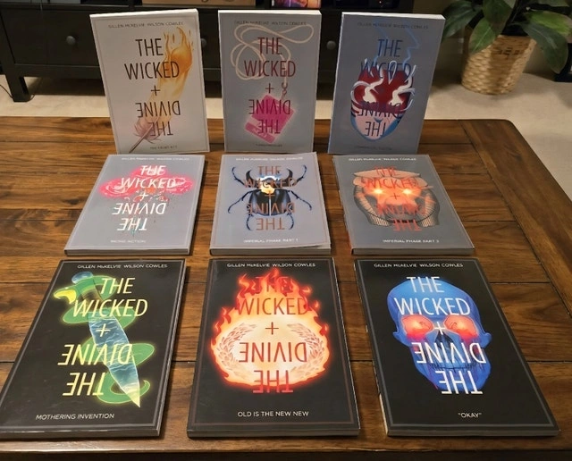Complete collection of "The Wicked + The Divine" graphic novels, all nine volumes by Kieron Gillen and Jamie McKelvie. The books are in used but good condition, like new. Perfect for fans of mythology, music, and compelling storytelling. The set originally retails for about $180 plus tax. Asking $120 for all.