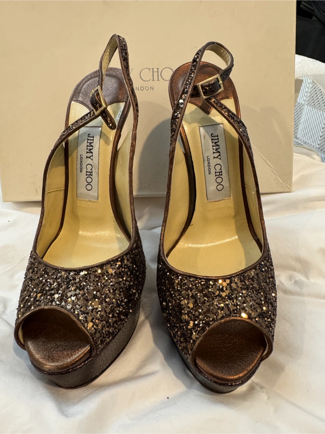 Jimmy Choo Bronze Glitter Heels - Size 38(US7.5)