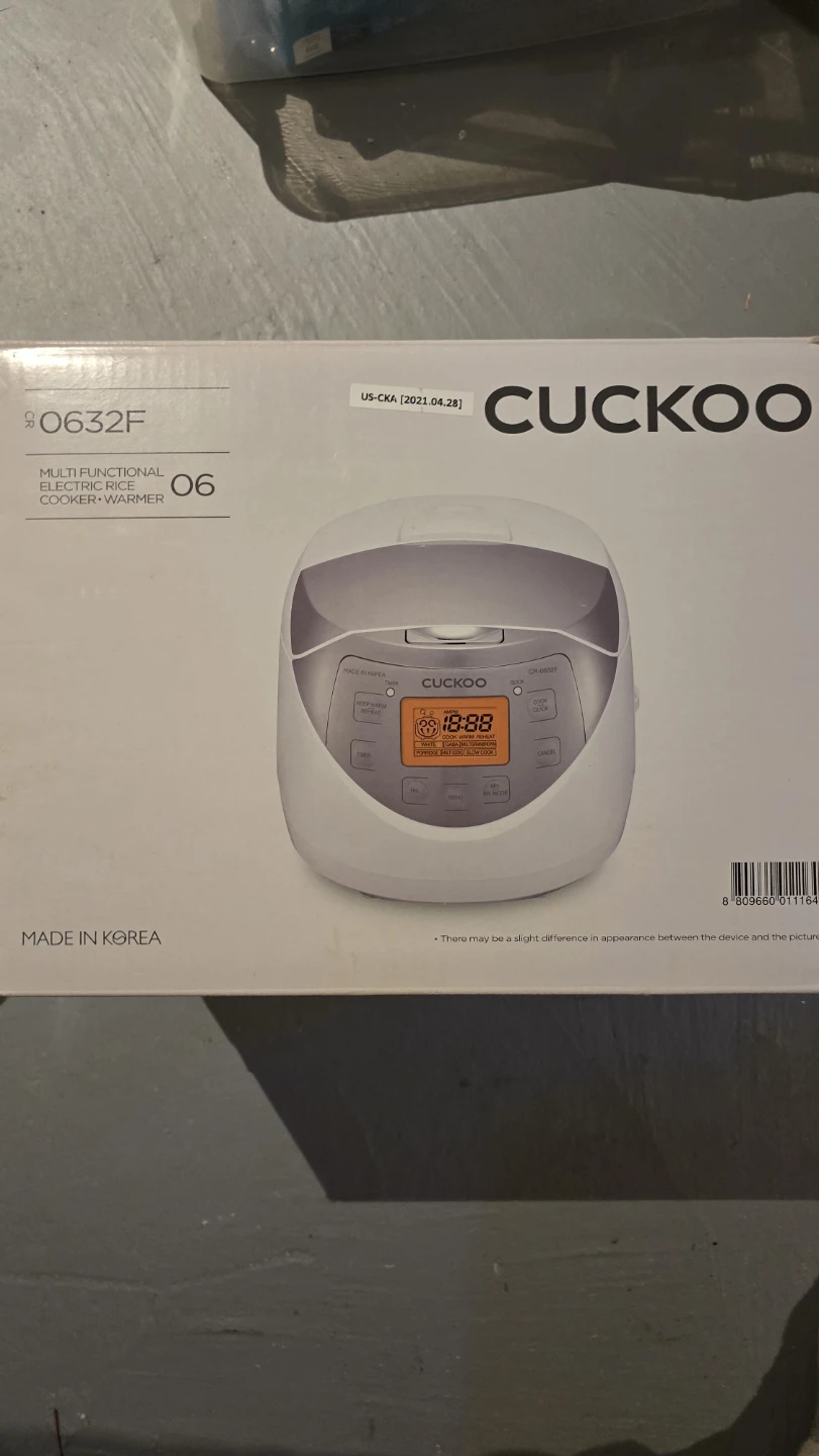 Selling a Cuckoo CR-0632F multi-functional electric rice cooker and warmer. It has 11 menu options for various cooking functions at the press of a button. Perfect for cooking many grain types, including GABA rice, brown rice, mixed rice, and more! The inner pot has a durable non-stick coating.