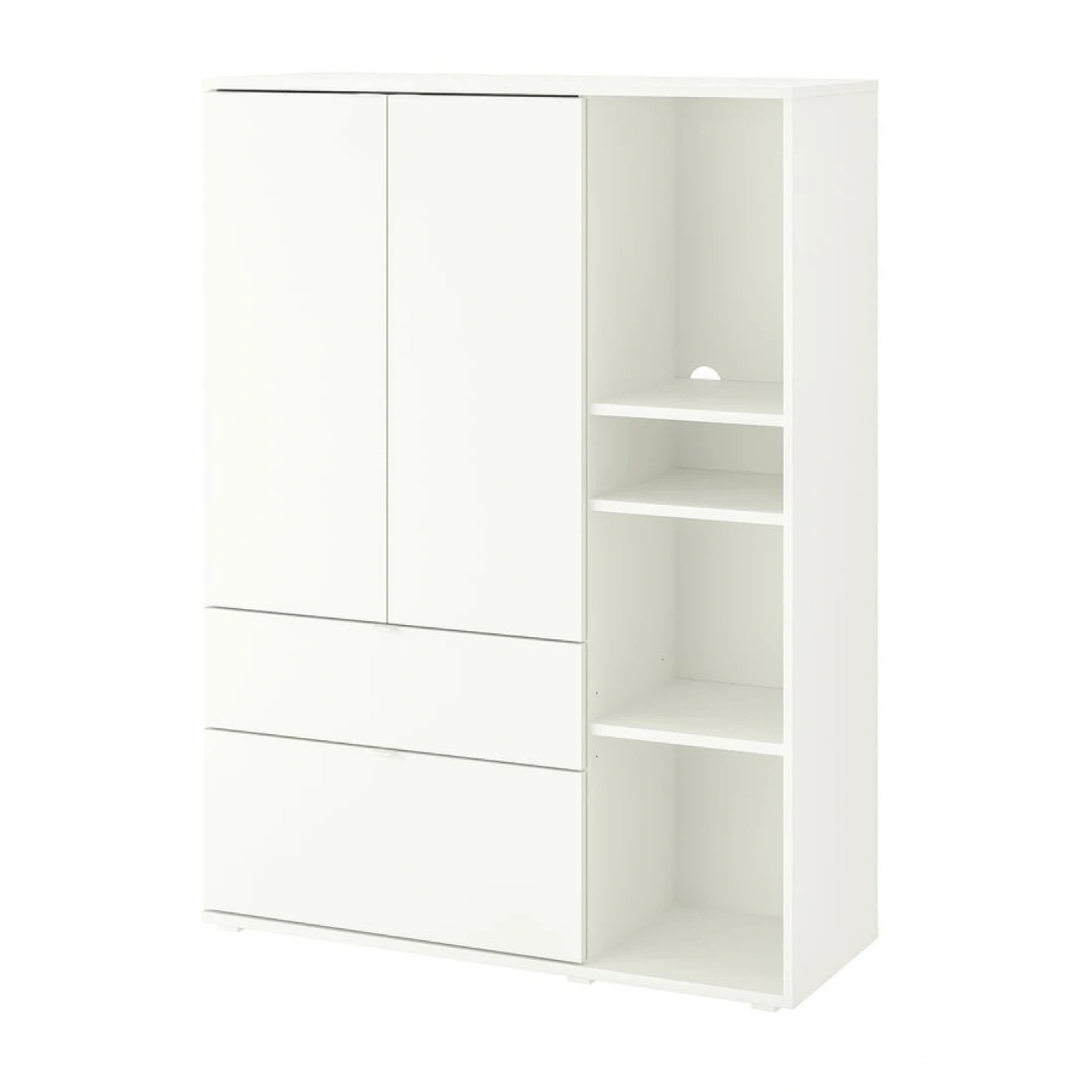 Modern white IKEA storage cabinet with drawers and open shelves. Perfect for bedroom or living room storage. Great condition, clean and sturdy. Ideal for organizing books, decor, or daily essentials.