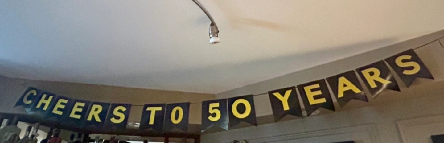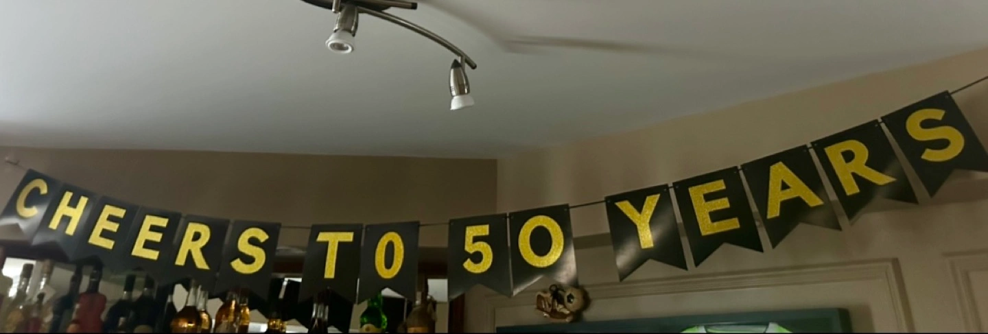 I'm selling a 'Cheers to 50 Years' banner. It's in great condition and would be perfect for a 50th birthday celebration or anniversary party!