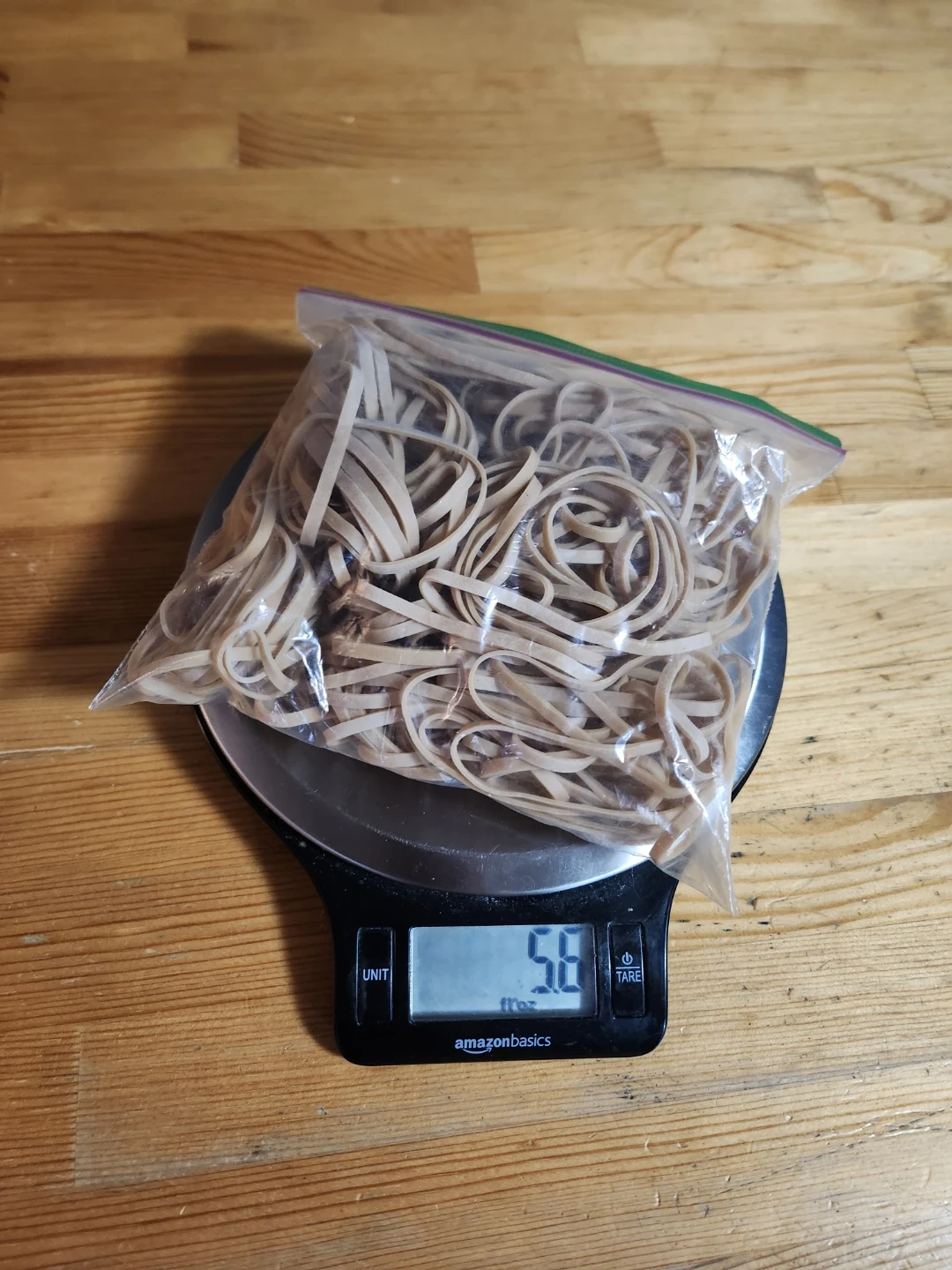 Bag of rubber bands. These are standard size and made of rubber. They come in a reusable zip-top bag.