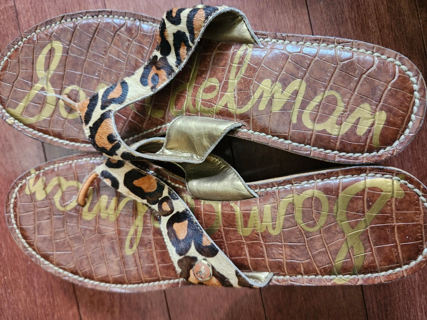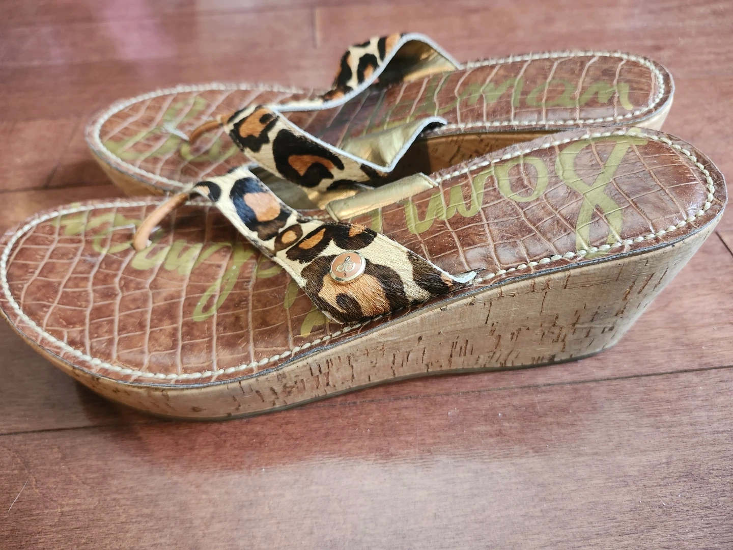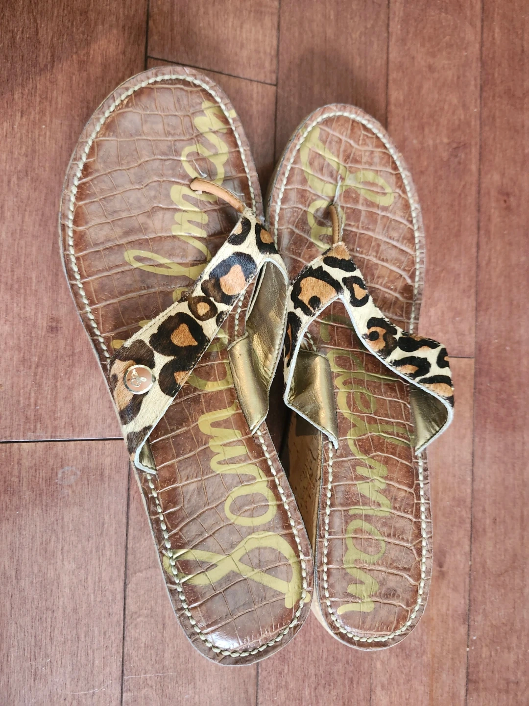 Buy & SellSam Edelman Wedge Sandals Size 10Sam Edelman Wedge Sandals Size 10$30Brown croc-embossed wedge sandals with leopard print straps. Cork wedge heel with gold accents. Size 10.ConditionGoodSize10WHERE TO MEETshops at don millsView MapSELLERverifiedemDon Mills1218 reviews0 chats·0 favorites·4 viewsSEND CHAT TO SELLERHi em! I’m interested in your listing.Hi em! I’m interested in your listing.Get the Karrot app to chatSign In to chat
