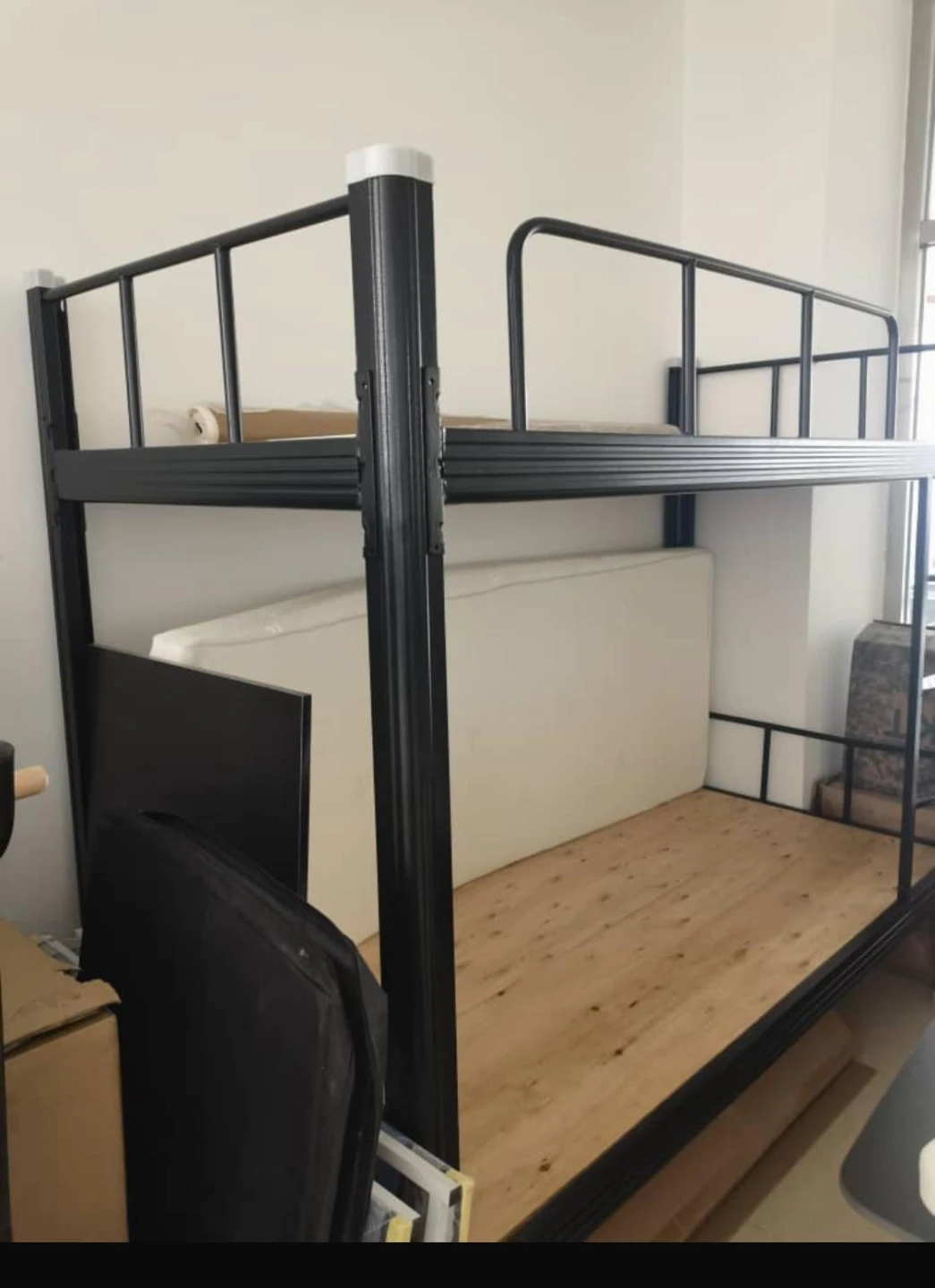 Selling a sturdy black metal bunk bed frame. Perfect for saving space in a kids' room or guest room. It's in good condition and ready for a new home! Mattress not included.