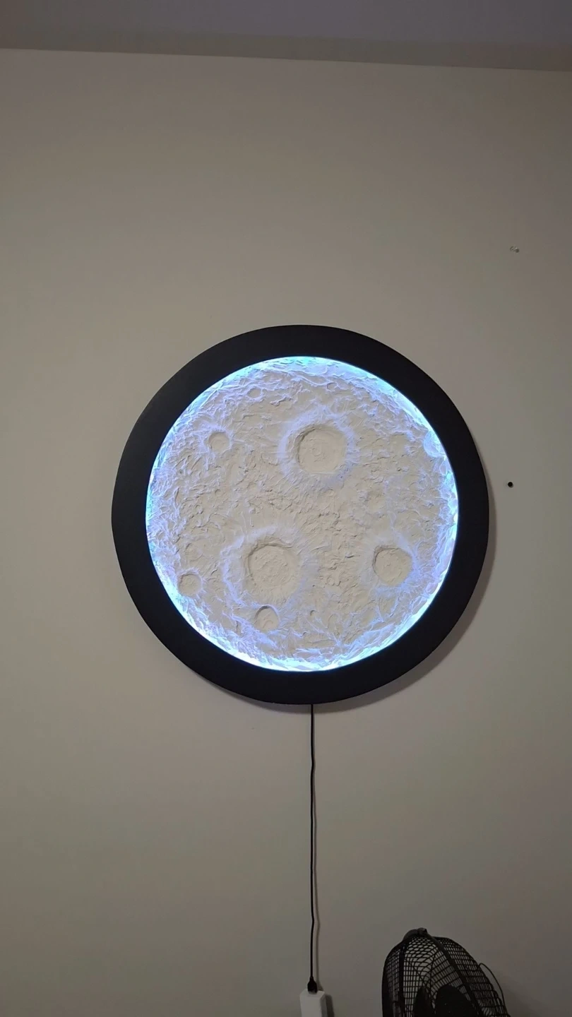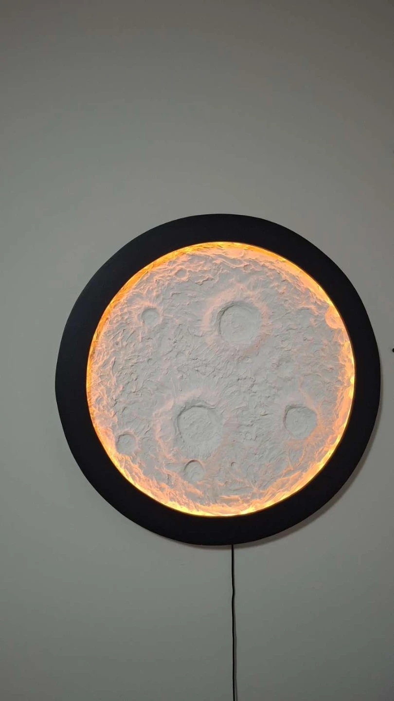 Stunning handmade moon wall light with color-changing LED effects that create a magical, space-like atmosphere in any room. The detailed 3D crater texture makes it look like a real moon, while the LED colors give it a modern aesthetic vibe.