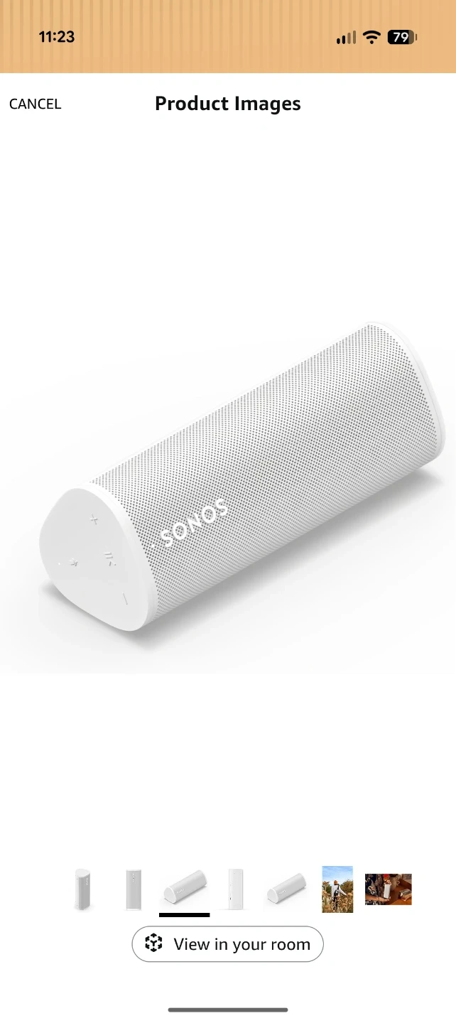 This is a Sonos Roam SL portable wireless speaker in white. It's compact and designed for easy transport. Connects wirelessly for audio streaming.