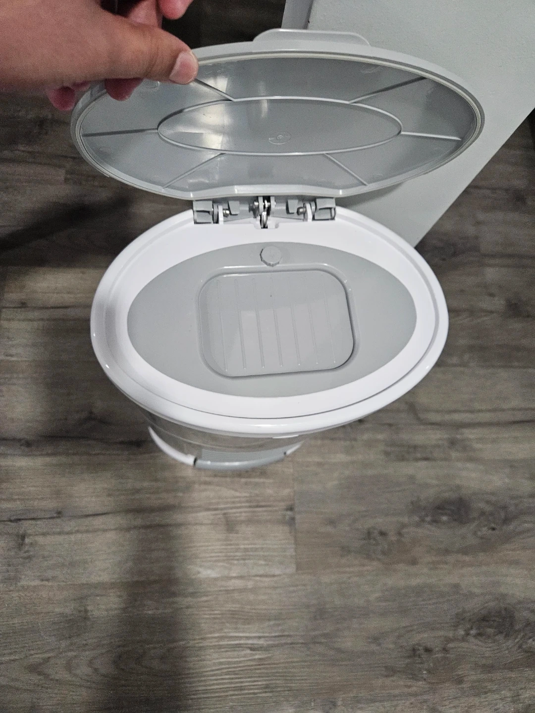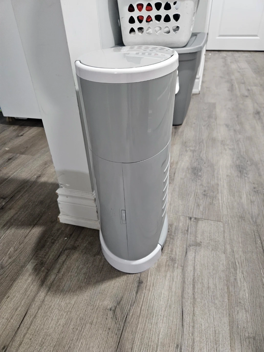 Selling a Dékor hands-free diaper pail in grey! It's in great shape and ready to keep those odours at bay. This pail is super convenient and easy to use, making diaper changes a breeze!