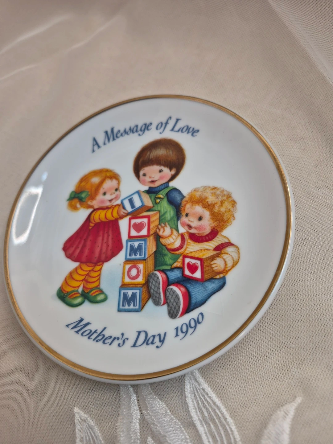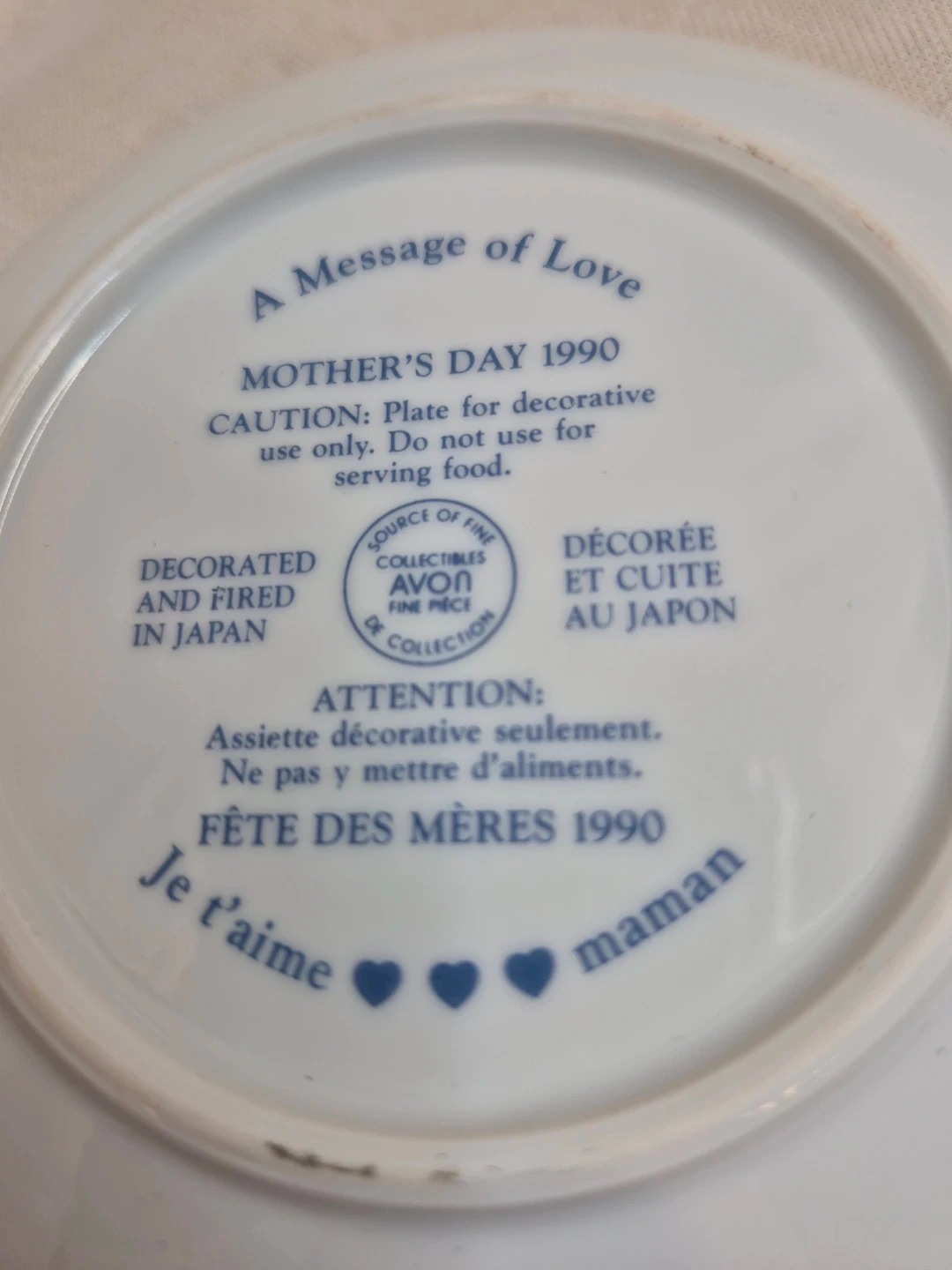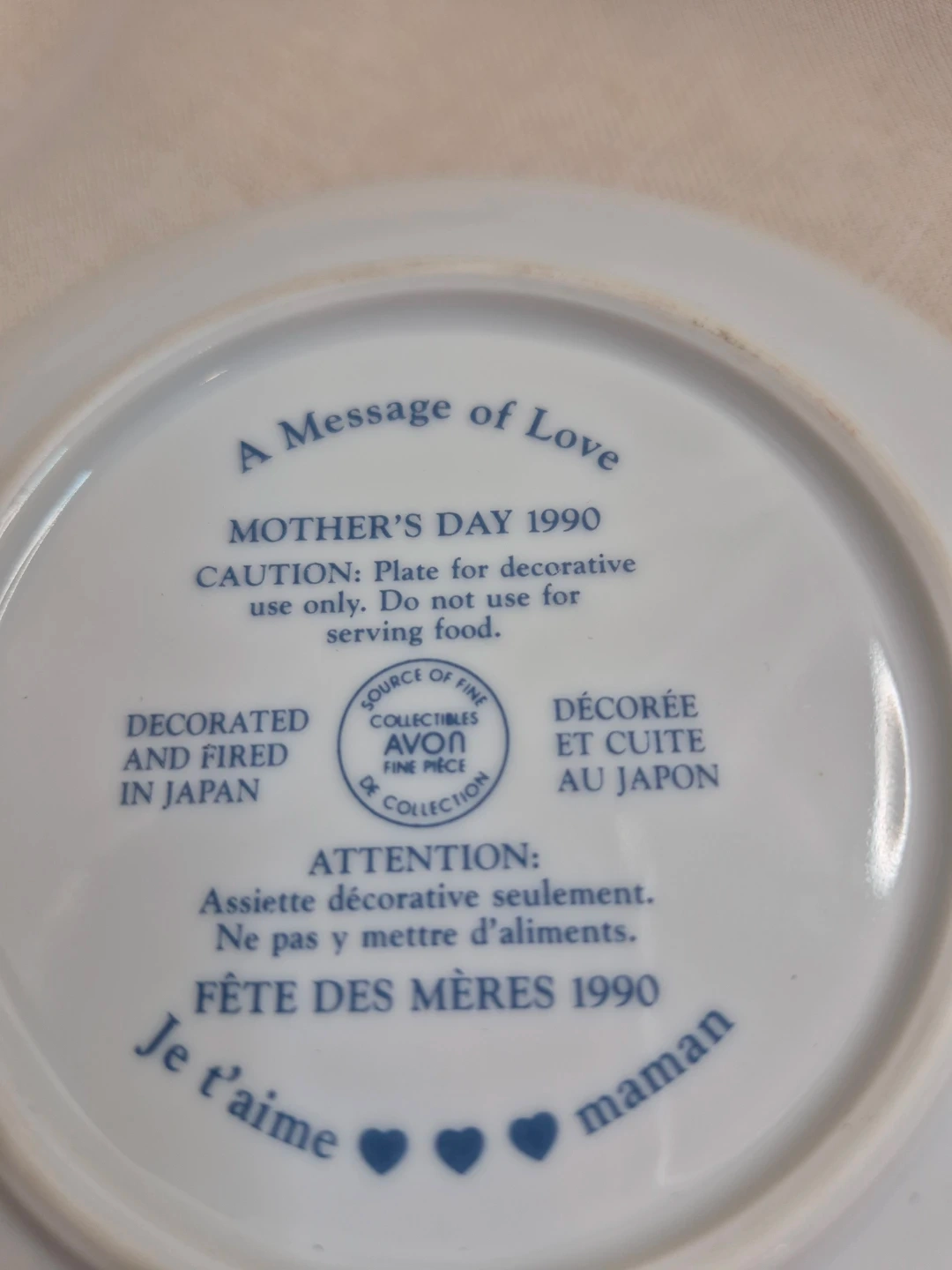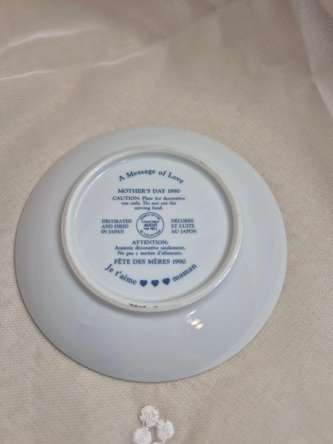 Collectible Avon 1990 Message of Love Mothers Day Decorative Porcelain Plate 5" Round no stand no Box Please See all pictures