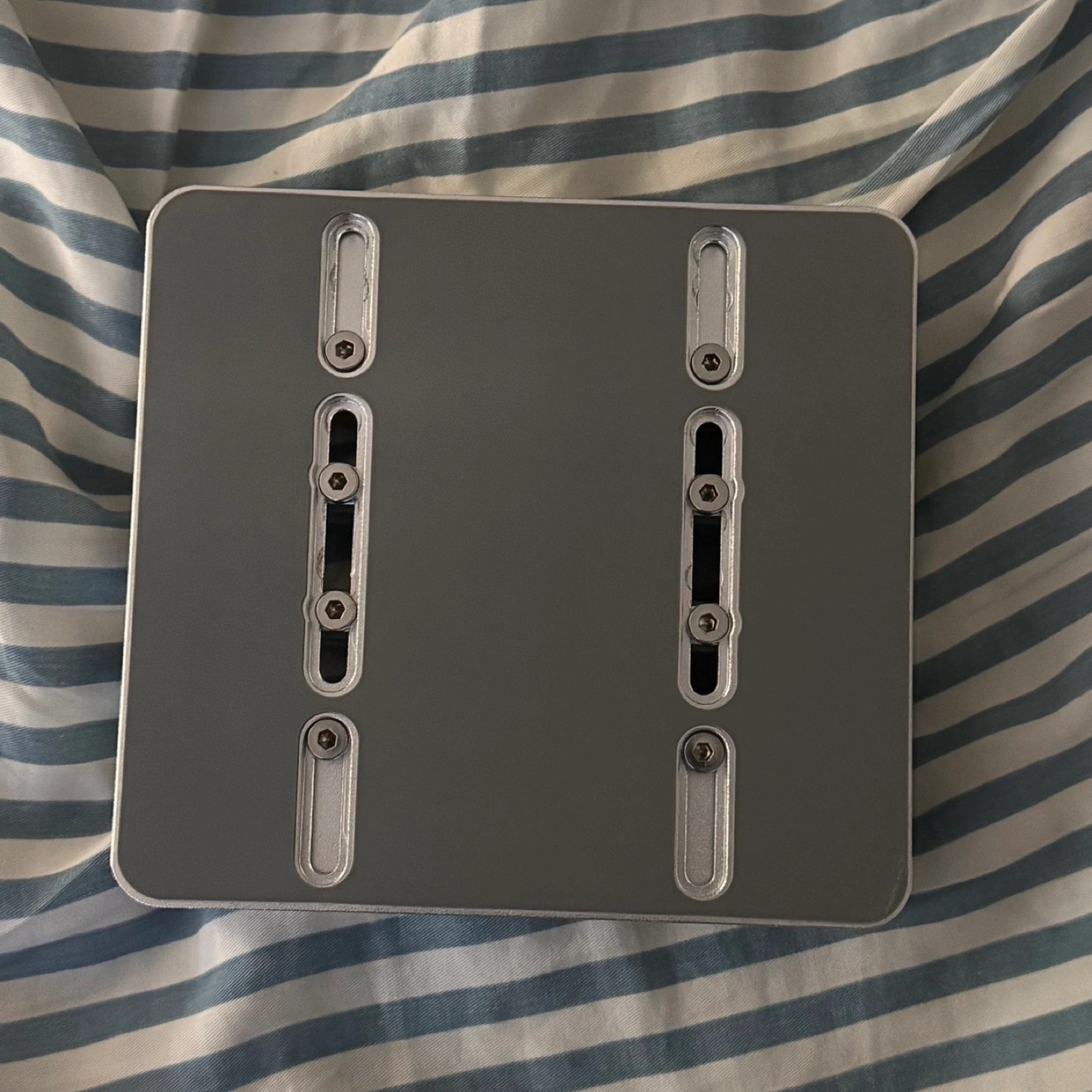 Selling a TEFONIA adjustable laptop stand in silver! It has 5 slots and is made of aluminum, perfect for saving space on your desk. It's designed for Apple MacBook, Surface, Galaxy, Tablets, iPad, and iPhones. Get organized with this handy stand!