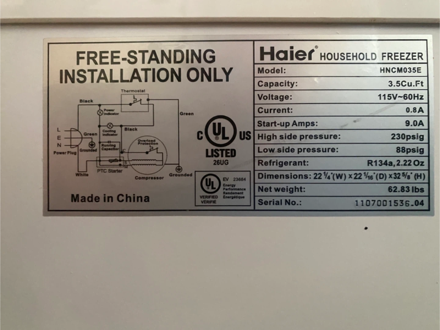 Haier 3.5 Cu Ft Compact Chest Freezer (CAN DELIVER)