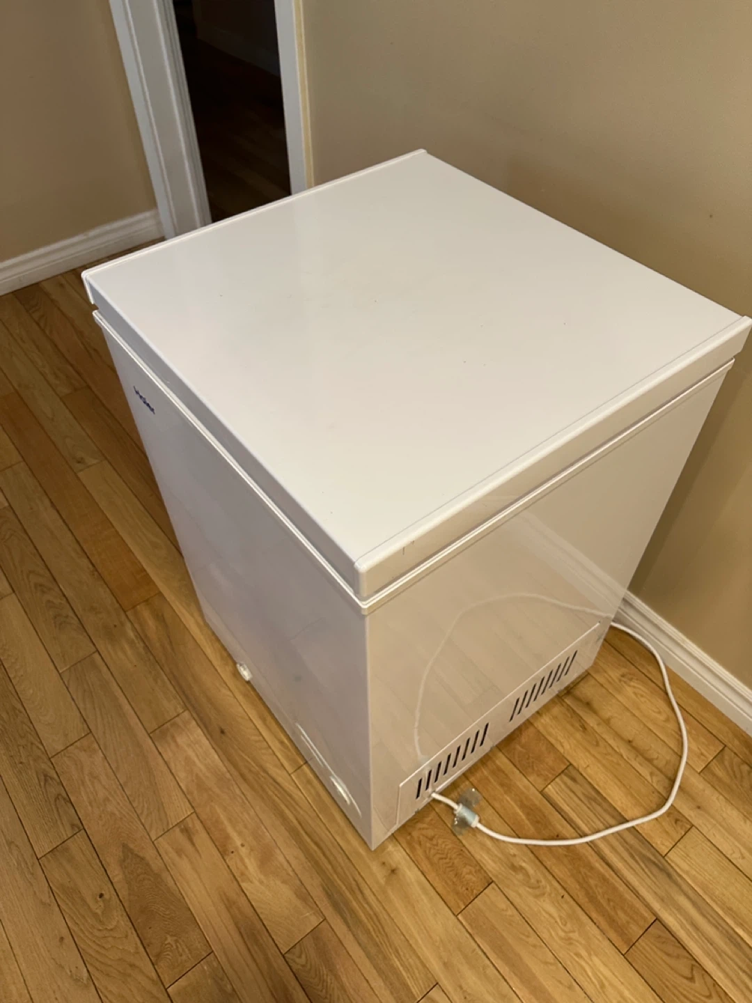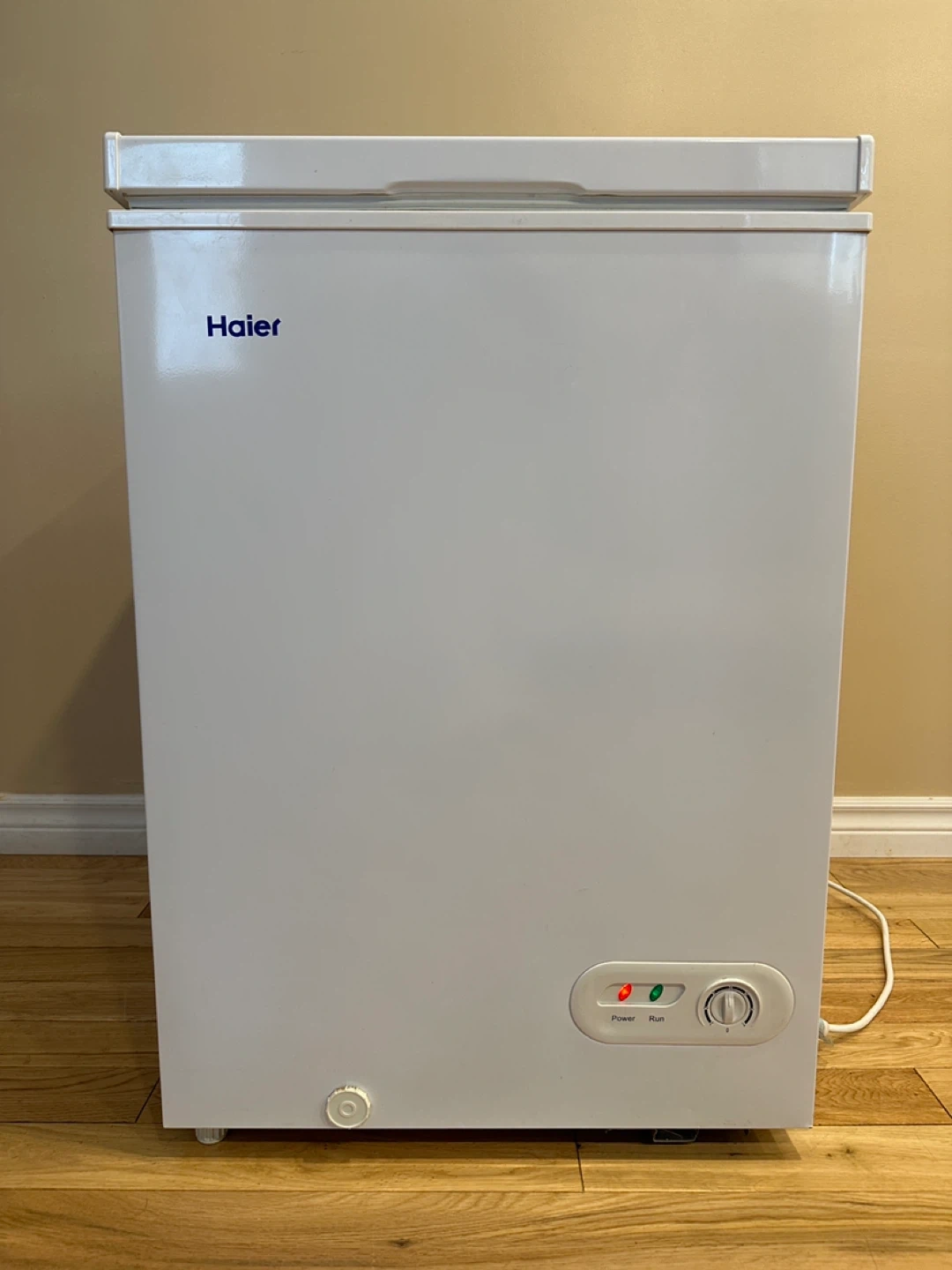 Clean and fully working Haier chest freezer in very good condition. Perfect size for an apartment, condo, basement, or extra freezer storage.