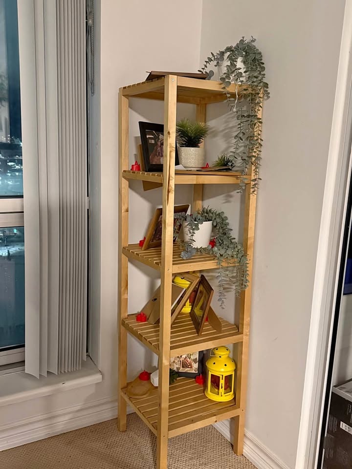 Charming wooden corner display shelf in excellent condition. Sturdy, compact, and perfect for organizing or elevating your living space décor. Feel free to message if you have any questions!