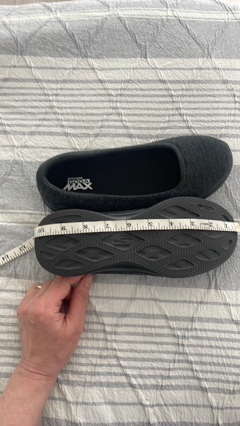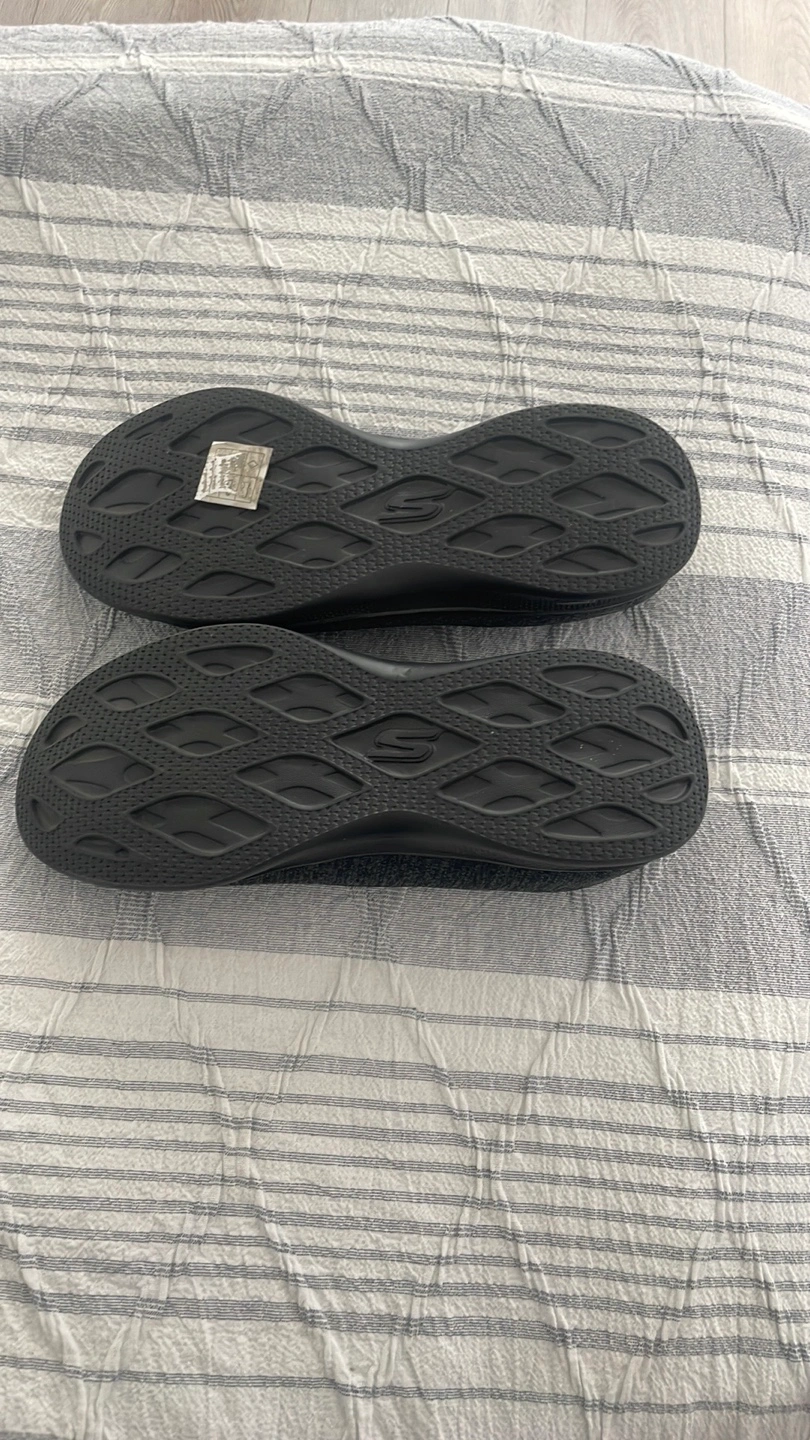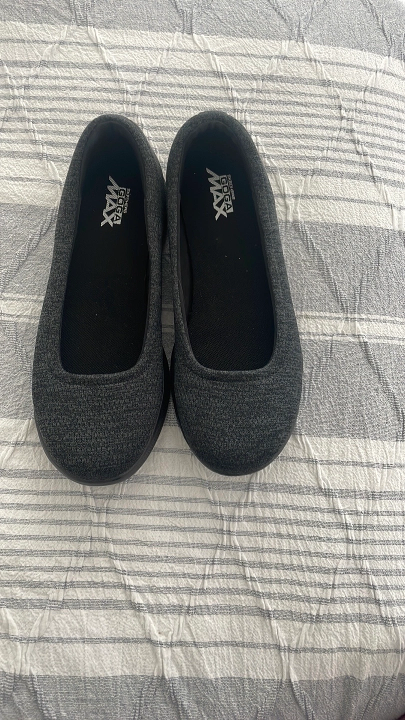 Here's a pair of women's flats. They are black and made of a knit-like material. The insoles display the brand name. This is a great way to get some comfortable exercise in. New never worn