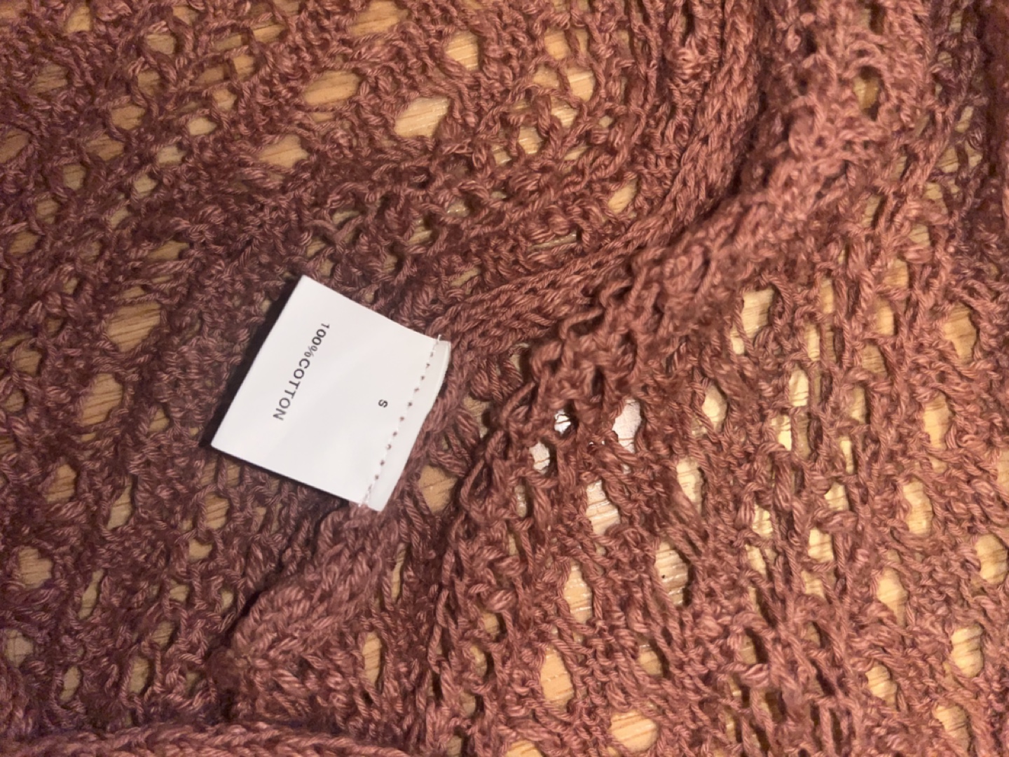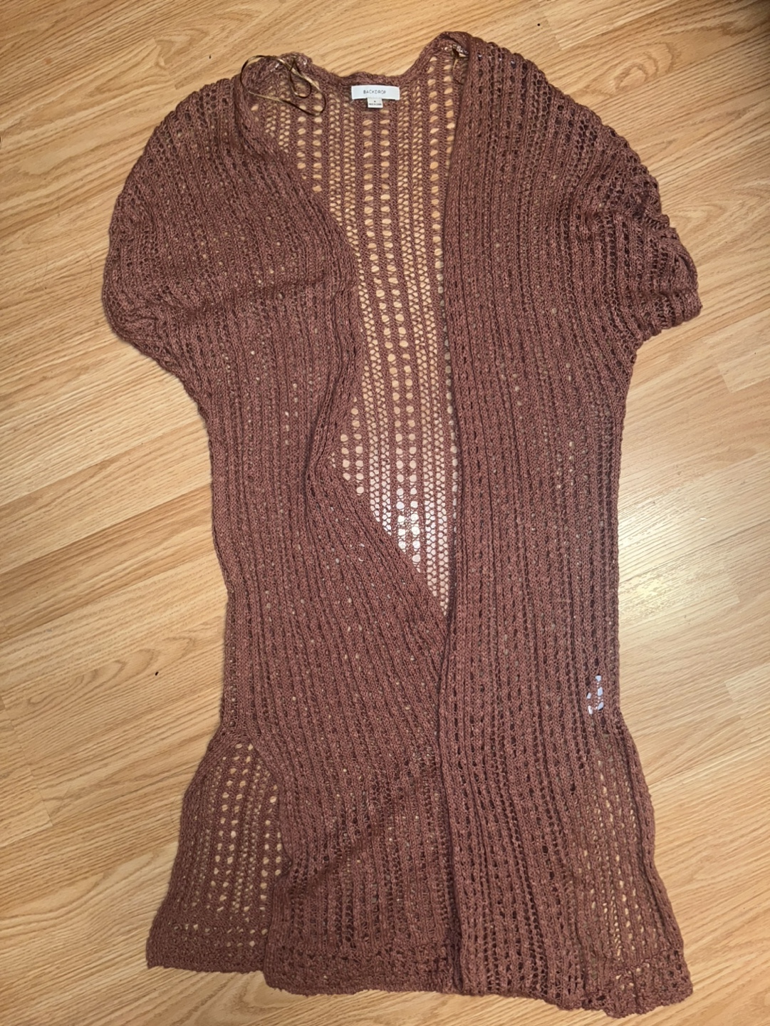 Brown knit open cardigan, mid length if you are on the shorter side. Size small. 100% cotton. Short sleeves. Open front, great for summer. Pick Up please. #freecycle