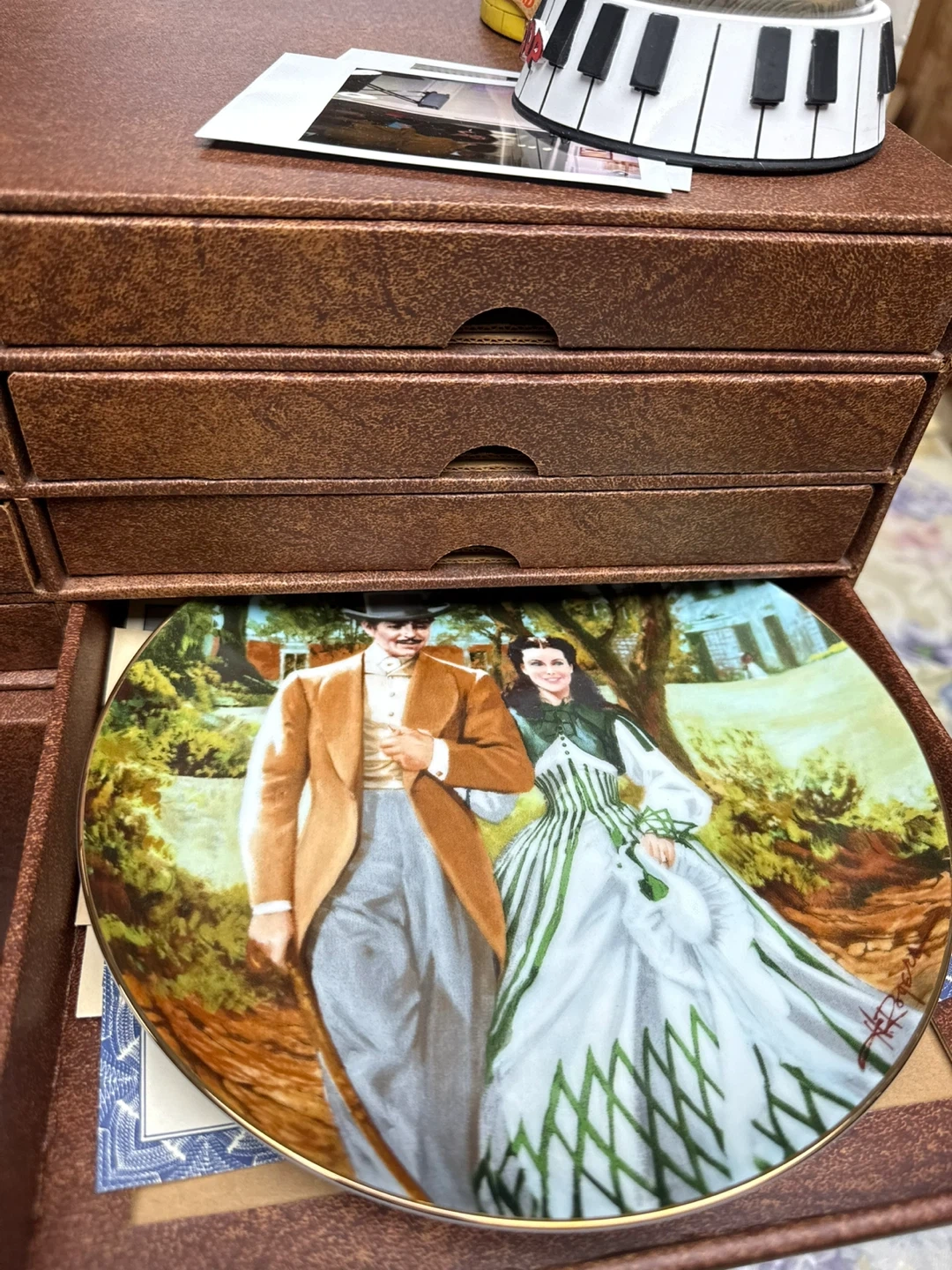 Selling a beautiful collector plate featuring a scene from Gone With The Wind. The plate is in great condition and comes with its original box. Perfect for any fan of the classic movie!