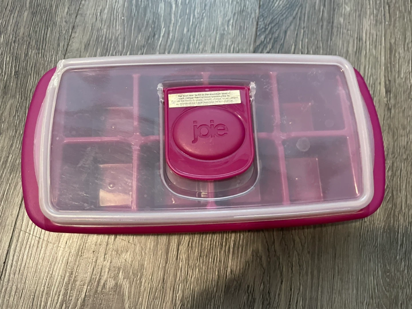 Selling a pink joie ice cube tray with a lid. It's in great condition and ready to keep your drinks cool!