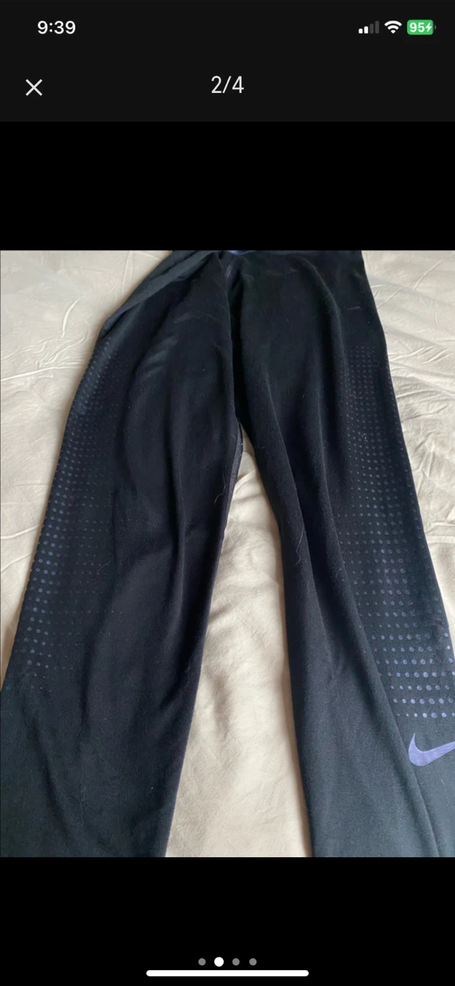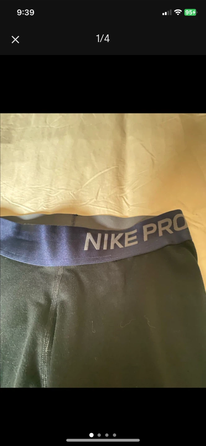 Selling a pair of medium Nike Pro leggings in black! They're in great condition and perfect for workouts or everyday wear. They are made in Sri Lanka with polyester and elastane materials.
