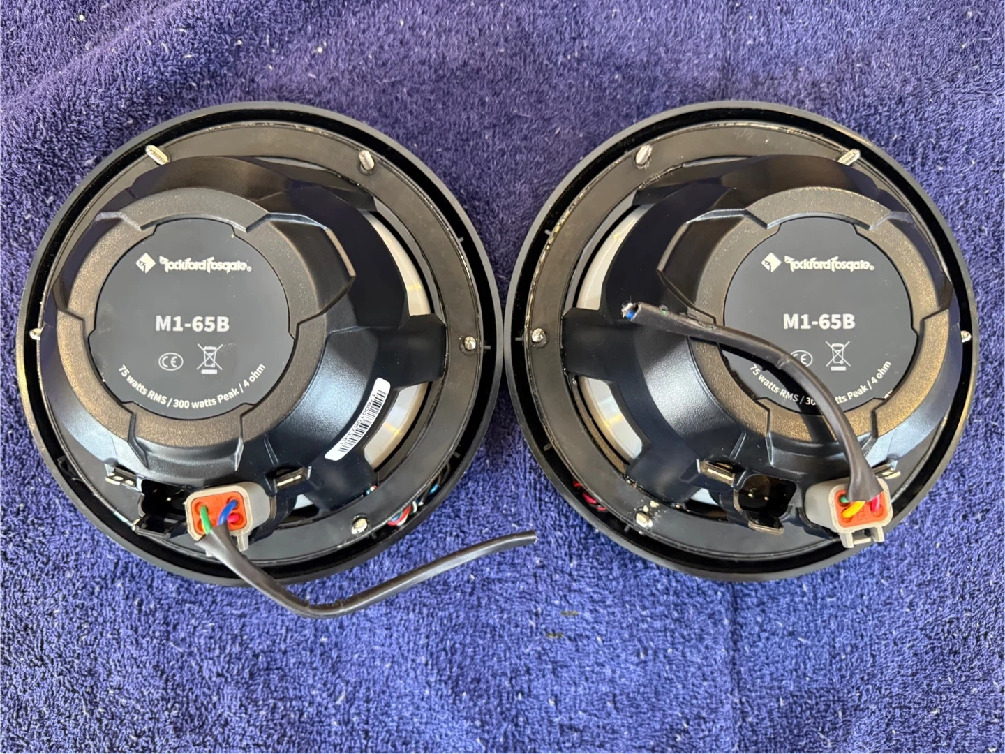 Selling a pair of Rockford Fosgate M1-65B marine speakers. They're 6 1/2 inches and rated for 75 watts RMS. These speakers are built for marine environments.
