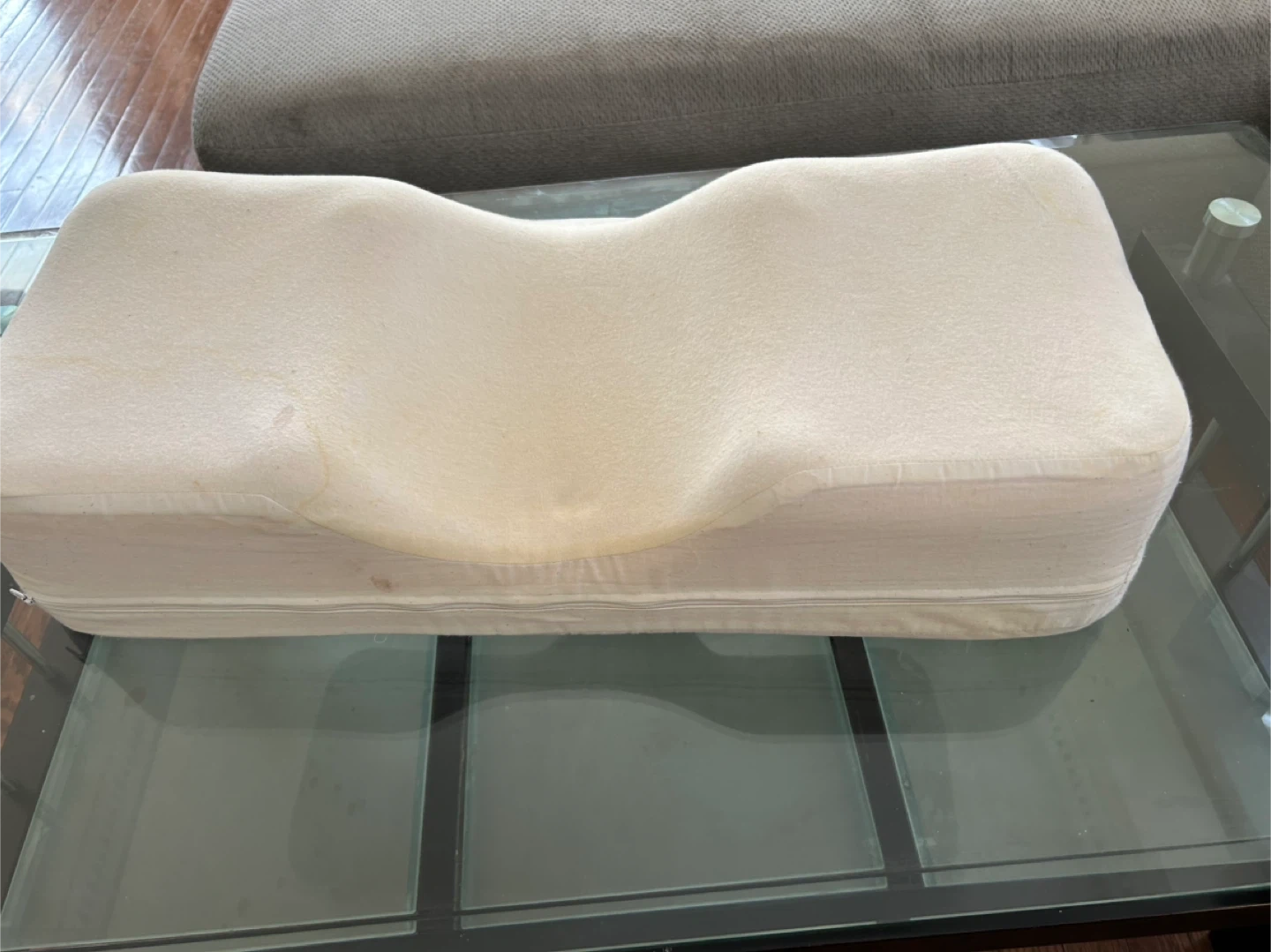 This is a memory foam contour pillow. It's designed for support and comfort. The material is soft foam. It's great for neck alignment!washable zipper cover as well