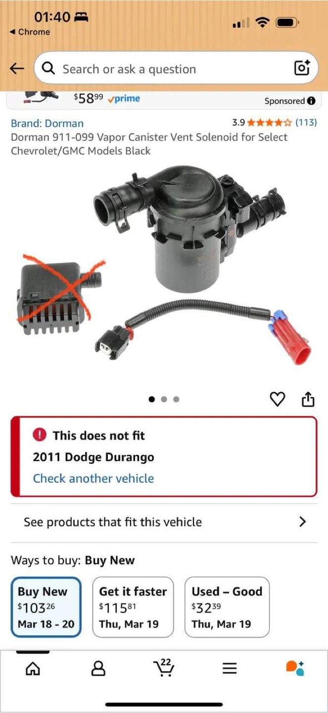 🚗 Dorman EVAP vapor canister vent solenoid