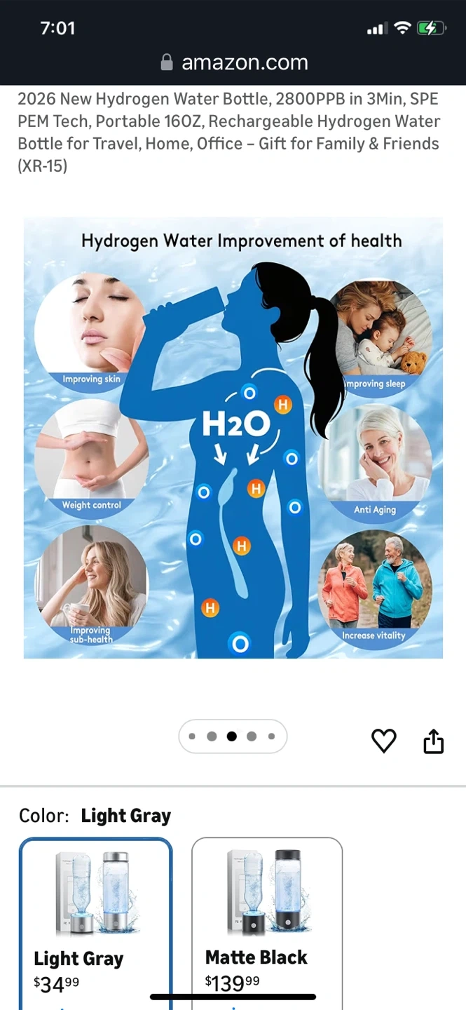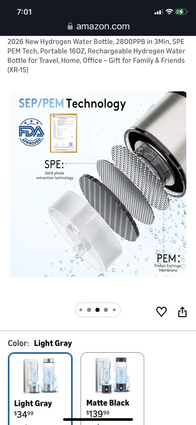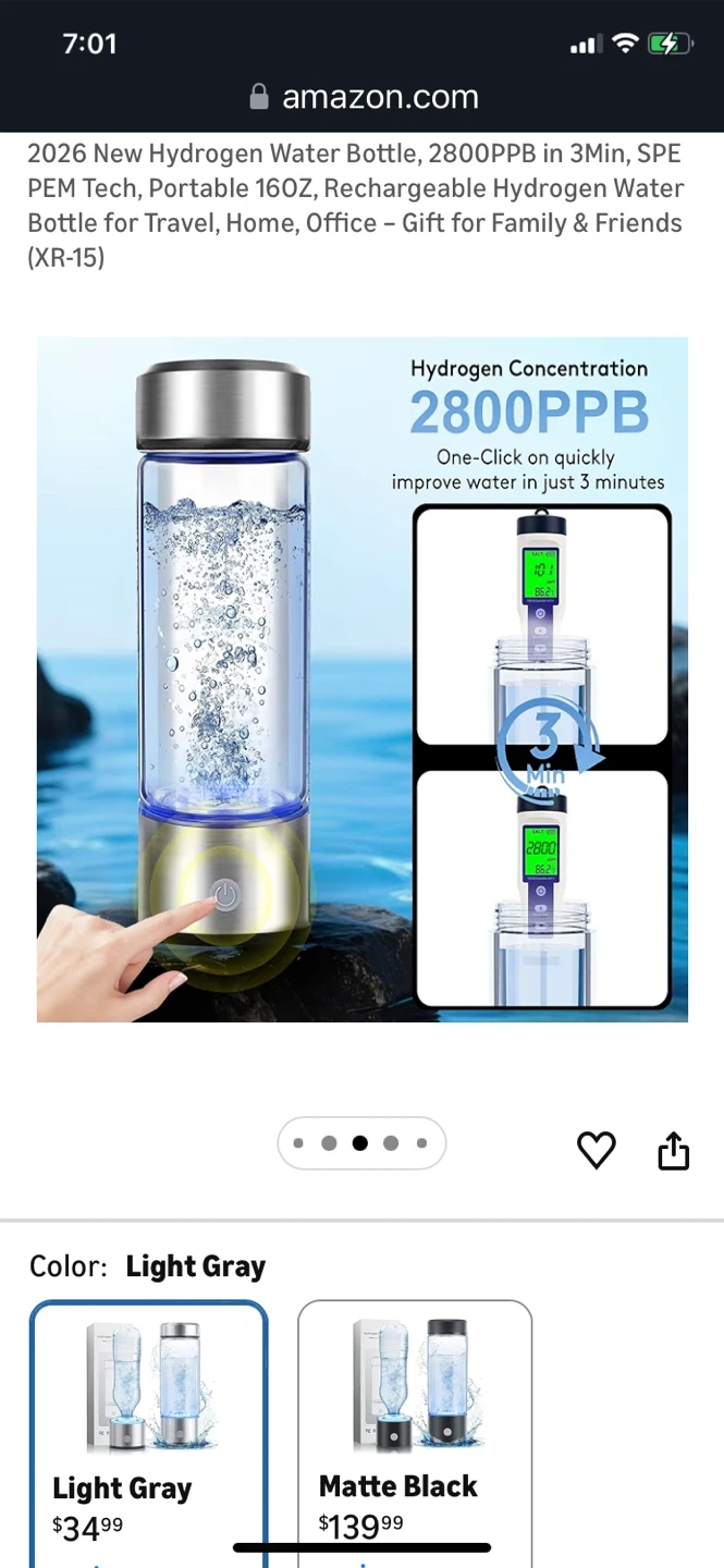 Portable Hydrogen Water Bottle - Light Gray