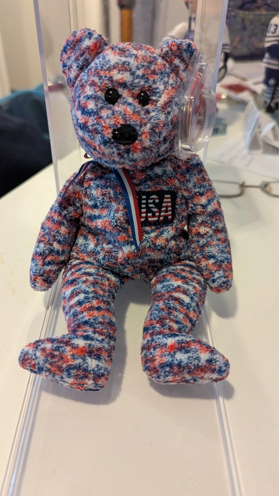 Buy & SellTy Beanie Baby - USA BearTy Beanie Baby - USA Bear$500Collectible Beanie Baby. Red, white, and blue colour scheme. Features a USA patch. In a plastic protector case.ConditionLike newWHERE TO MEETHomeView MapSELLERHermineConcord150 reviews0 chats·0 favorites·7 viewsSEND CHAT TO SELLERHi Hermine! I’m interested in your listing.Hi Hermine! I’m interested in your listing.Get the Karrot app to chatSign In to chat