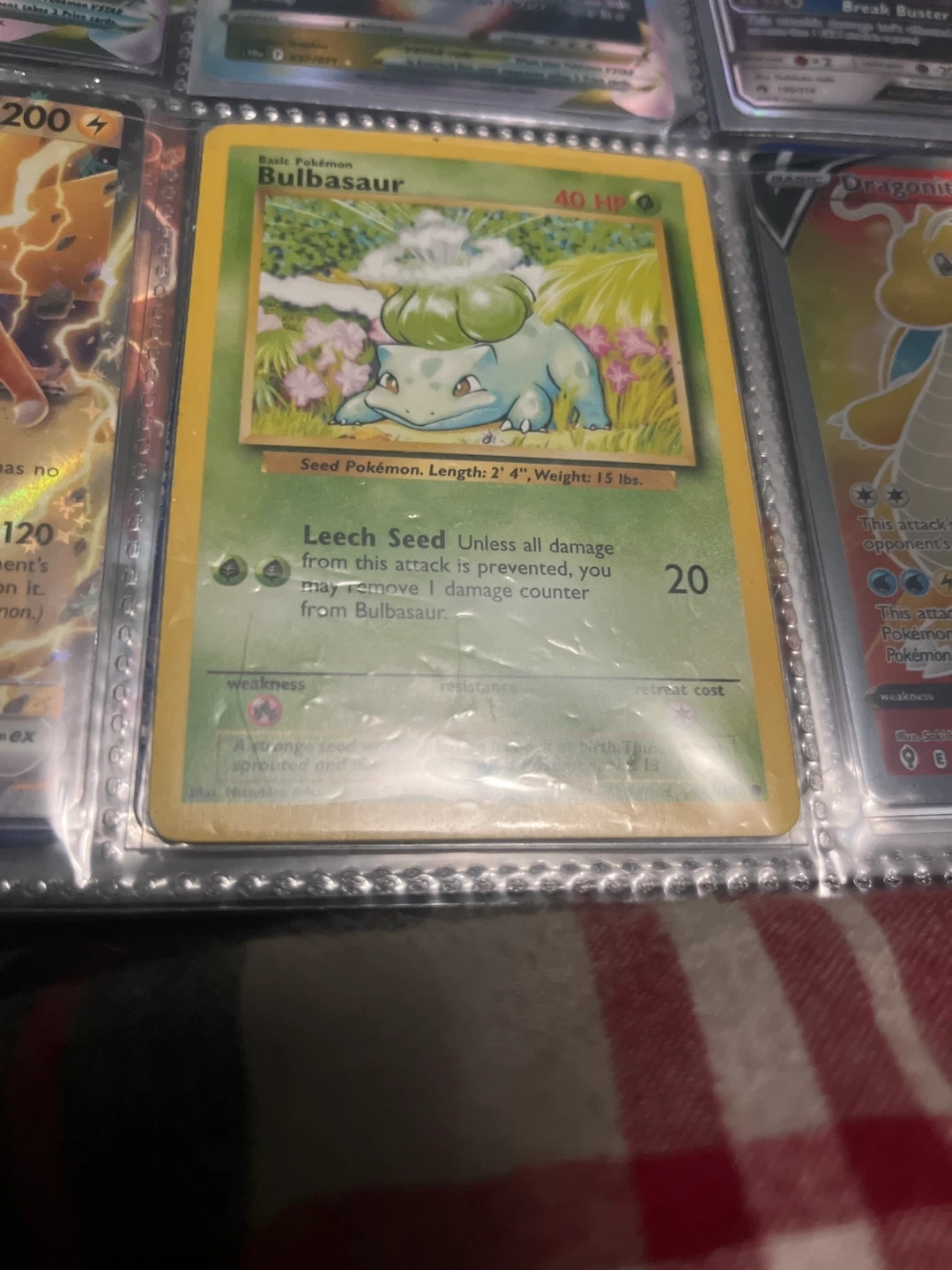 This is a basic Pokémon card featuring Bulbasaur. It's a Seed Pokémon with 40 HP. The card includes the "Leech Seed" attack. Looking for a price around 150 and 130