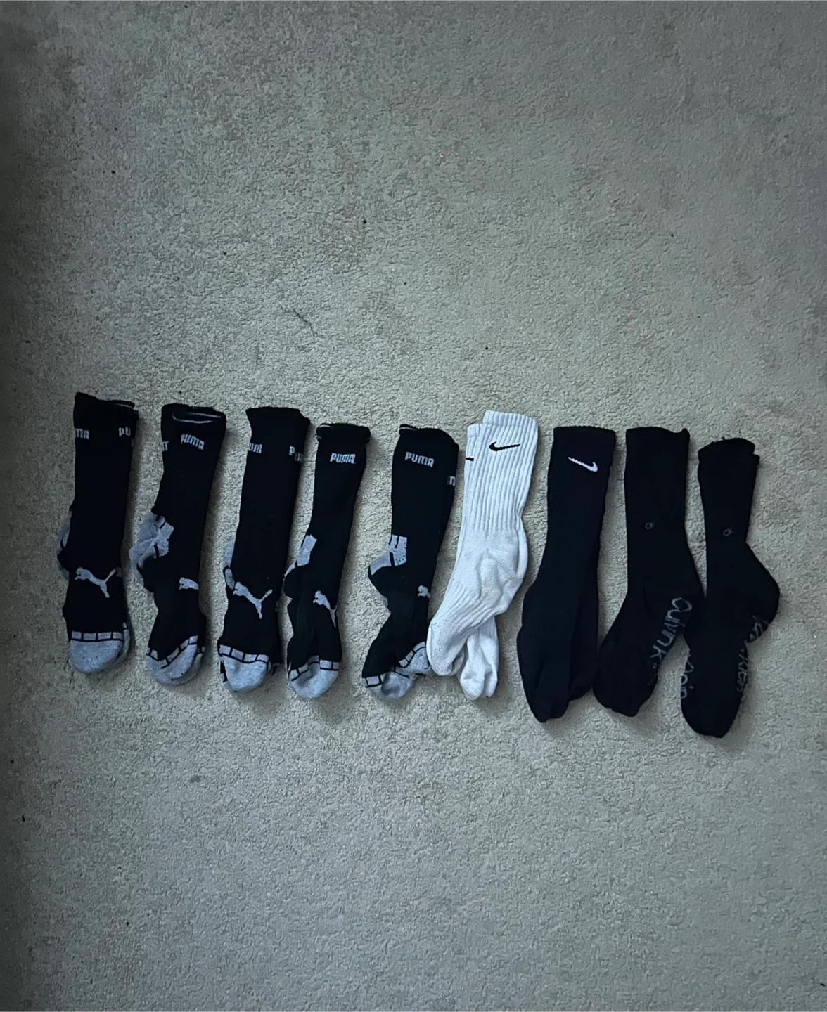 A collection of assorted socks, including Puma, Nike, and Calvin Klein brands! They are in good condition and ready for a new home, there’s one more pair of puma socks that doesn’t appear on the picture.