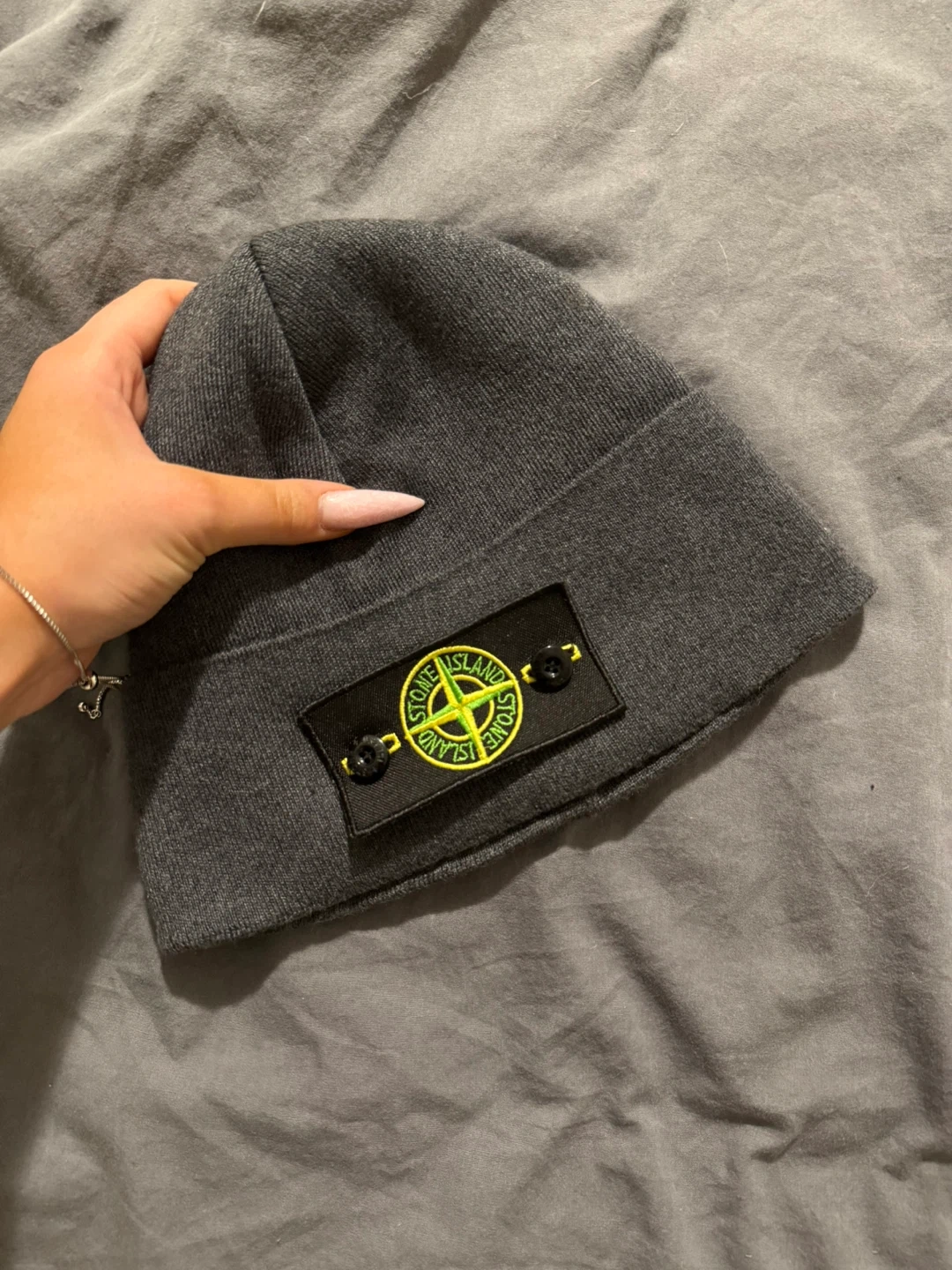 Selling a Stone Island beanie in a nice grey colour. It's in great condition and ready to keep you warm!