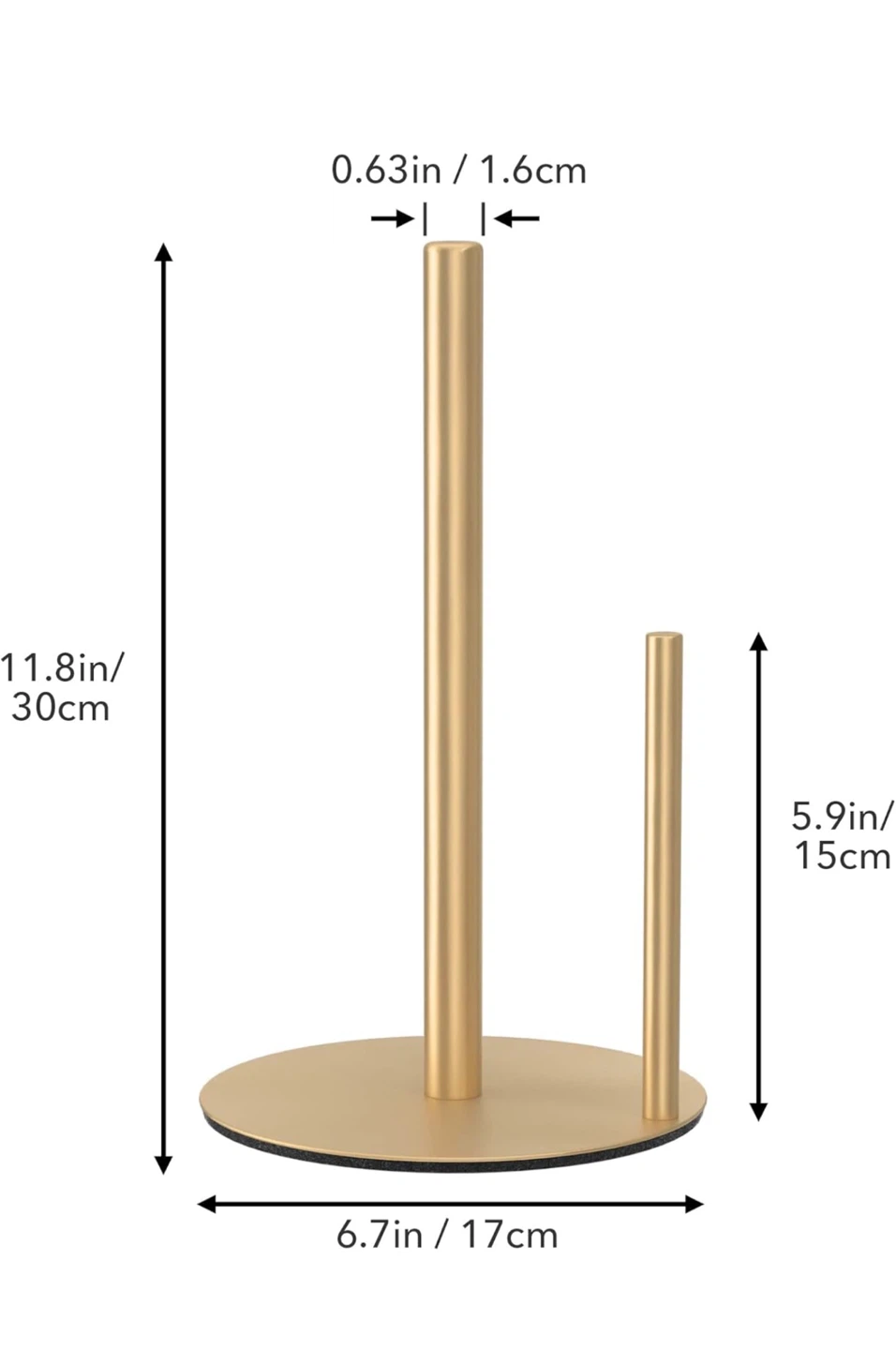 This paper towel holder is made of stainless steel, offering durability and rustproof qualities. It features a stable, anti-slip base to protect your tabletop from scratches. The holder measures 11.8in (30cm) in height and 6.7in (17cm) in base diameter. It's a practical addition to any kitchen counter!